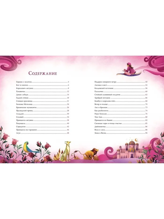 • 176 страниц с лучшими сказками из разных стран: от классики, такой как «Кот в сапогах» и «Русалочка», до менее известных, но не менее увлекательных историй.
