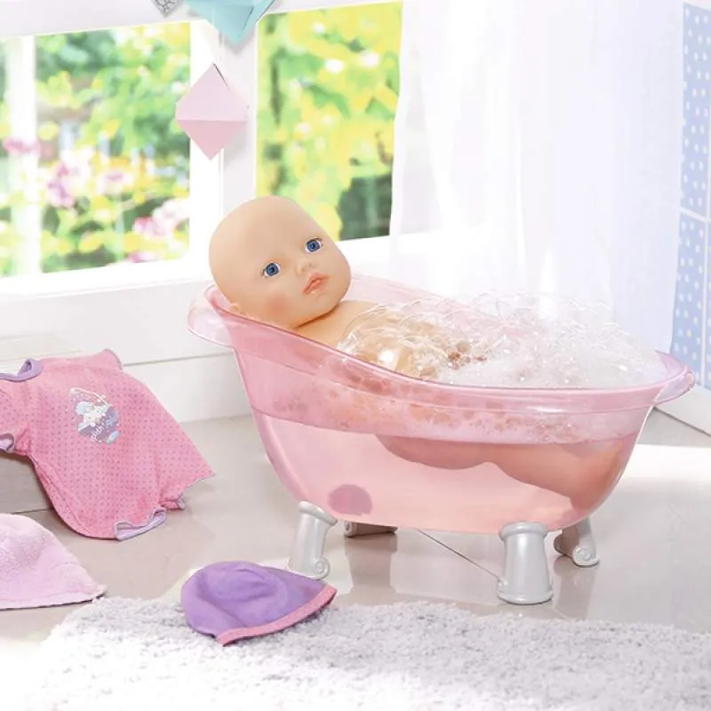 В комплекте с Бэби Аннабель идет ванночка из розового прозрачного пластика на ножках,