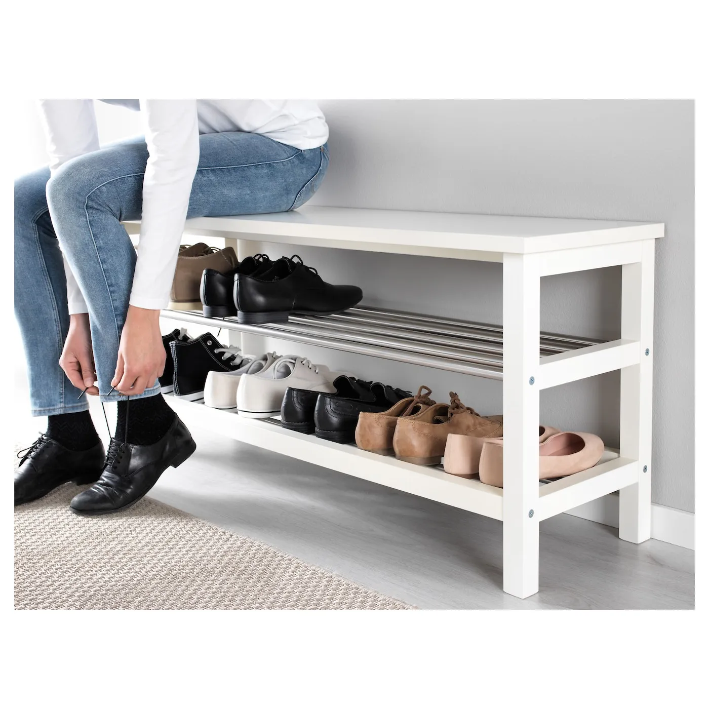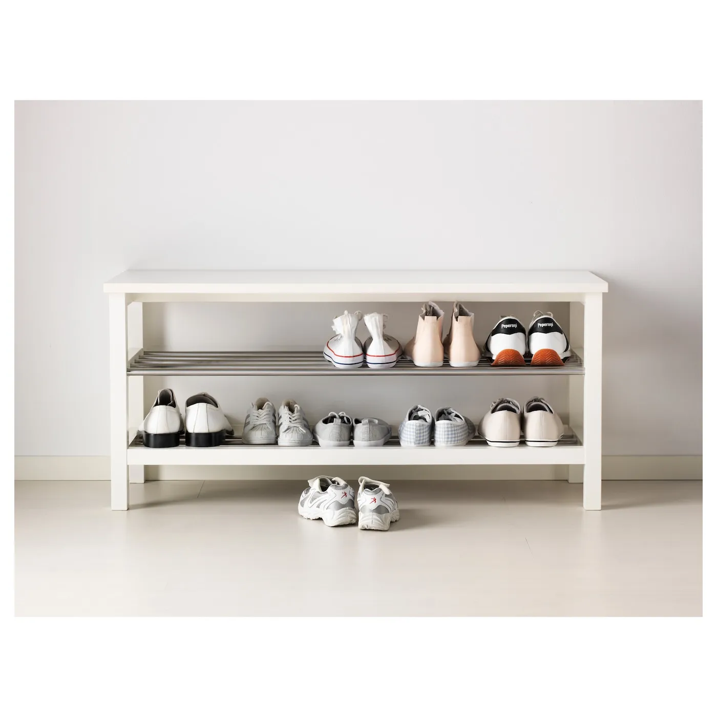 Вмещает примерно 8 пар обуви.