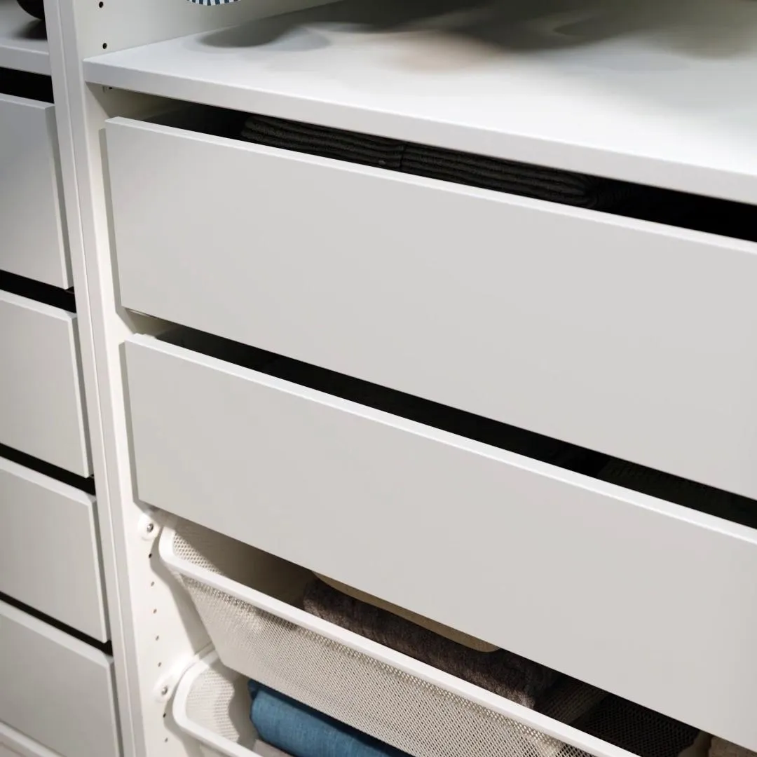 Если у вас открытый гардероб PAX, вы можете добавить индивидуальности, сочетая этот ящик с любыми ручками или набалдашниками по вашему вкусу.