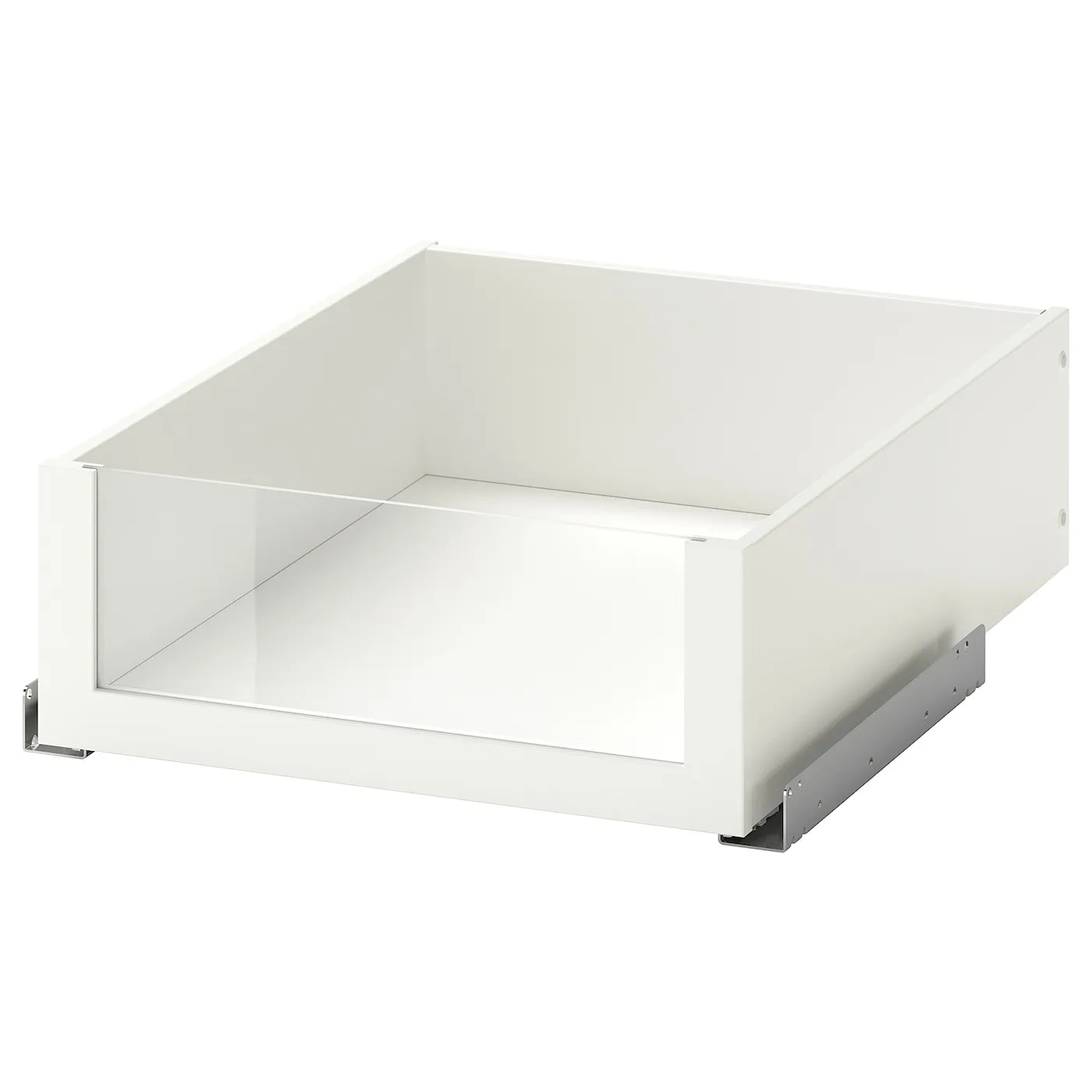 Можно дополнить стеклянной полкой KOMPLEMENT, чтобы сделать содержимое верхнего ящика видимым сверху.