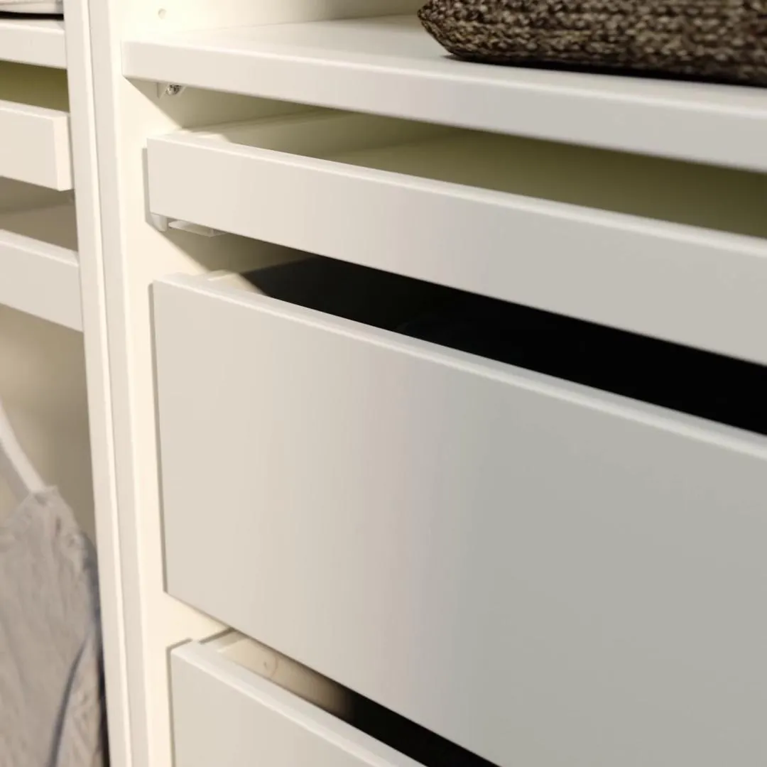 Отличное решение для сложенной одежды или аксессуаров, обеспечивающее вашему шкафу PAX аккуратный и минималистичный вид. Дополните ящиком KOMPLEMENT – и больше не тратьте время на поиски пары ваших носков.