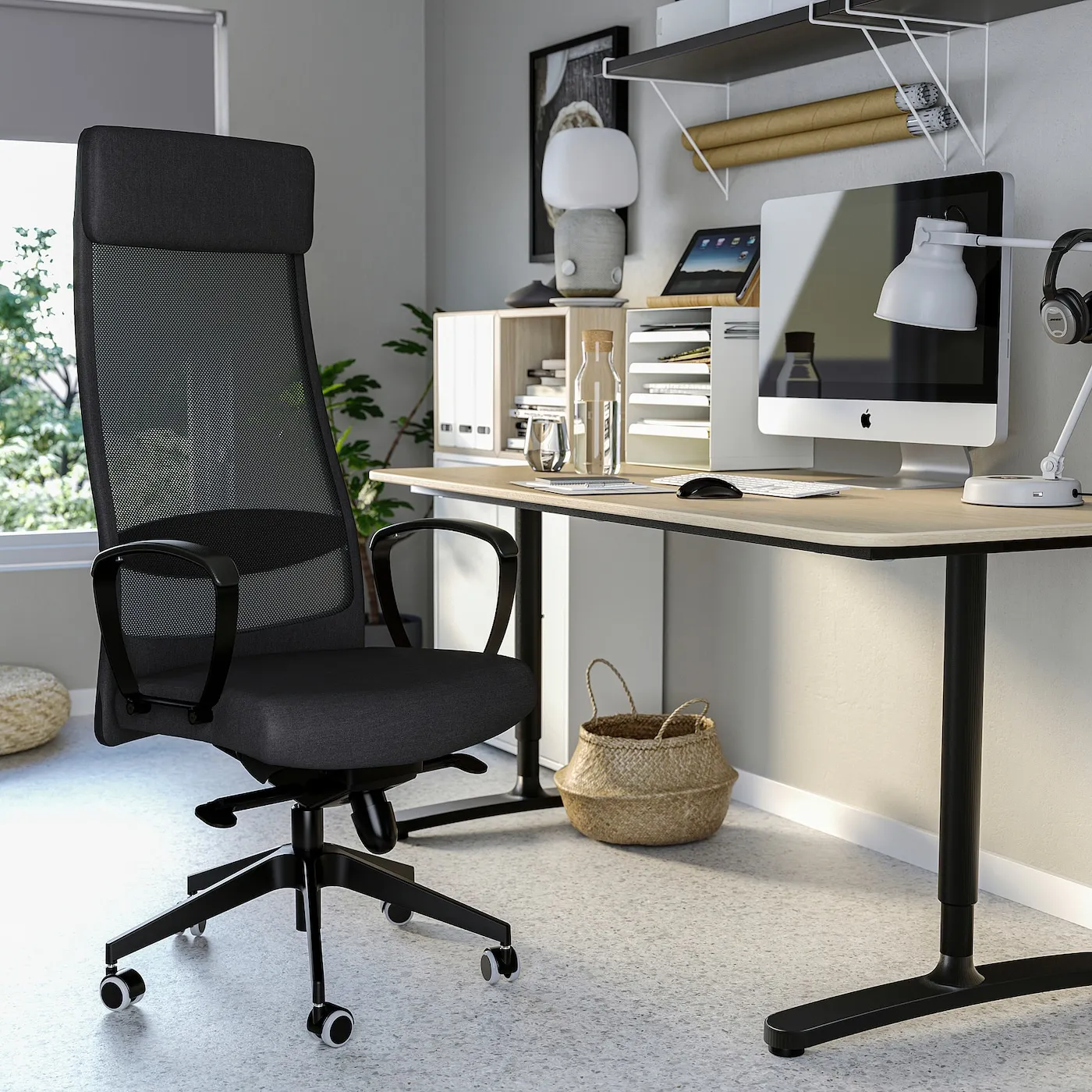 Сетчатый материал спинки позволяет циркулировать воздуху, что полезно при длительном сидении.