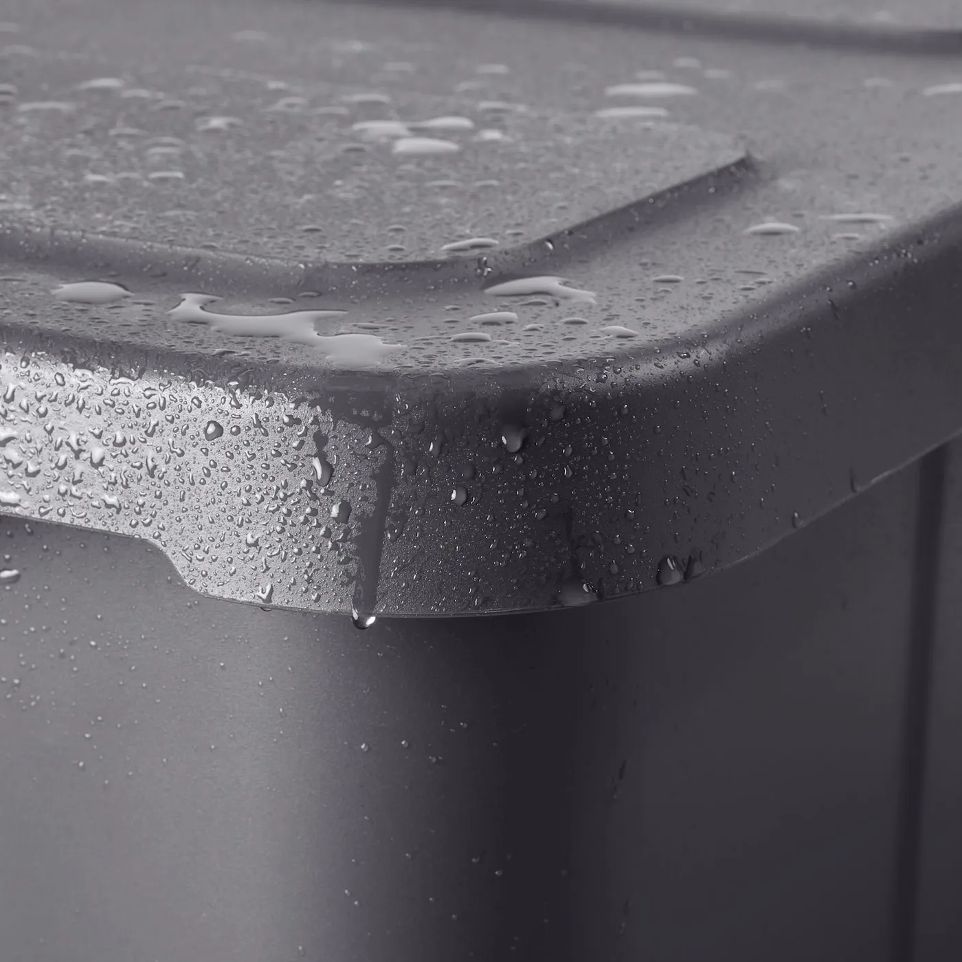 Эта прочная и долговечная коробка протестирована на устойчивость к погодным условиям на улице. Она водонепроницаема, а крышка с защёлкой надёжно фиксируется, обеспечивая защиту ваших вещей от влаги.