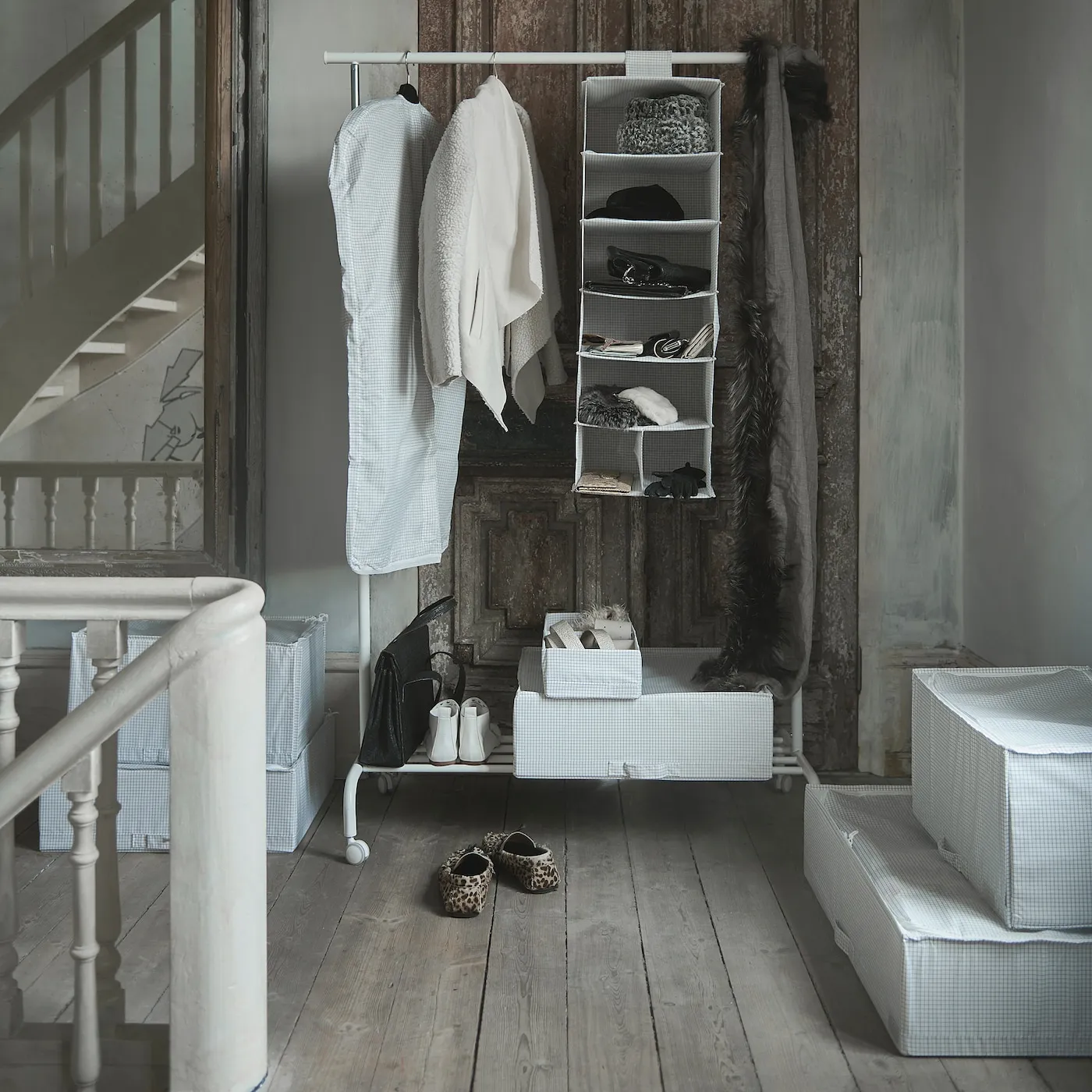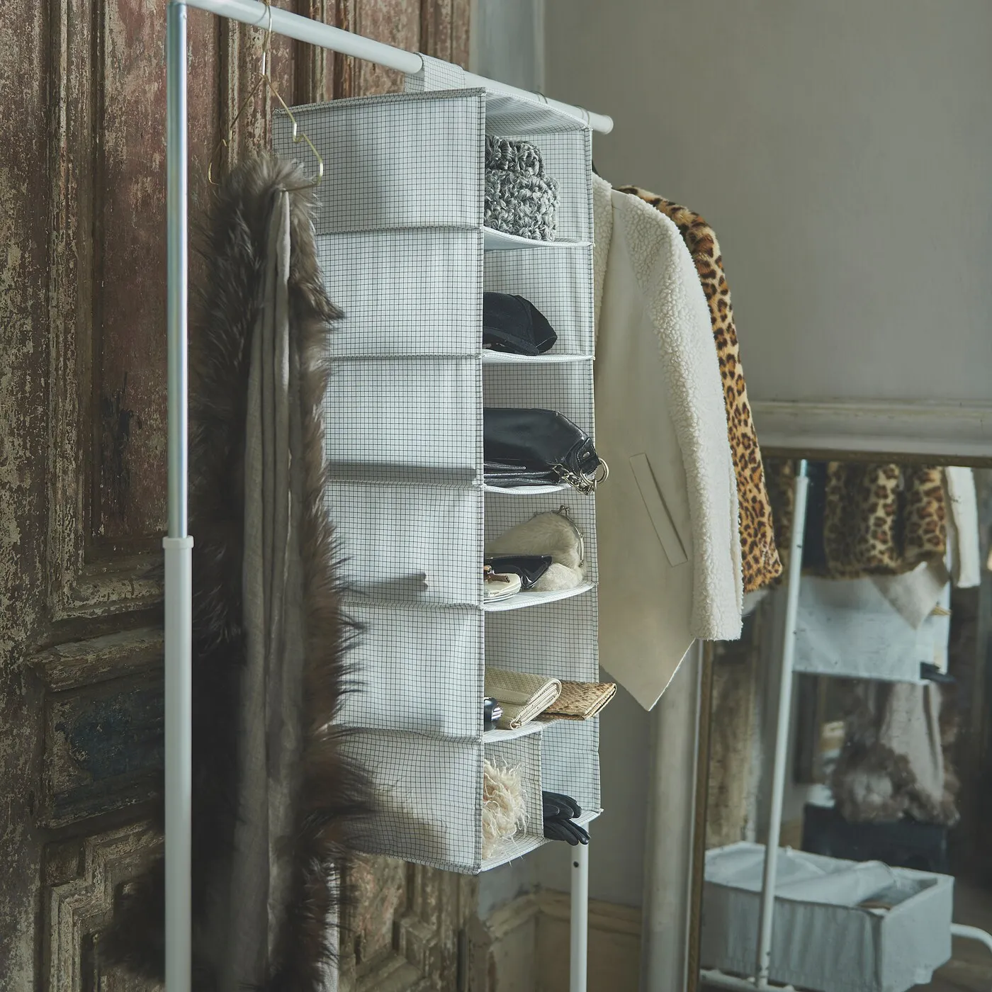 Нужны дополнительные полки для одежды и аксессуаров? Повесьте этот органайзер с клетчатым узором внутри гардероба или на отдельной стойке. Это часть серии STUK, которая помогает упорядочить как крупные, так и мелкие вещи.