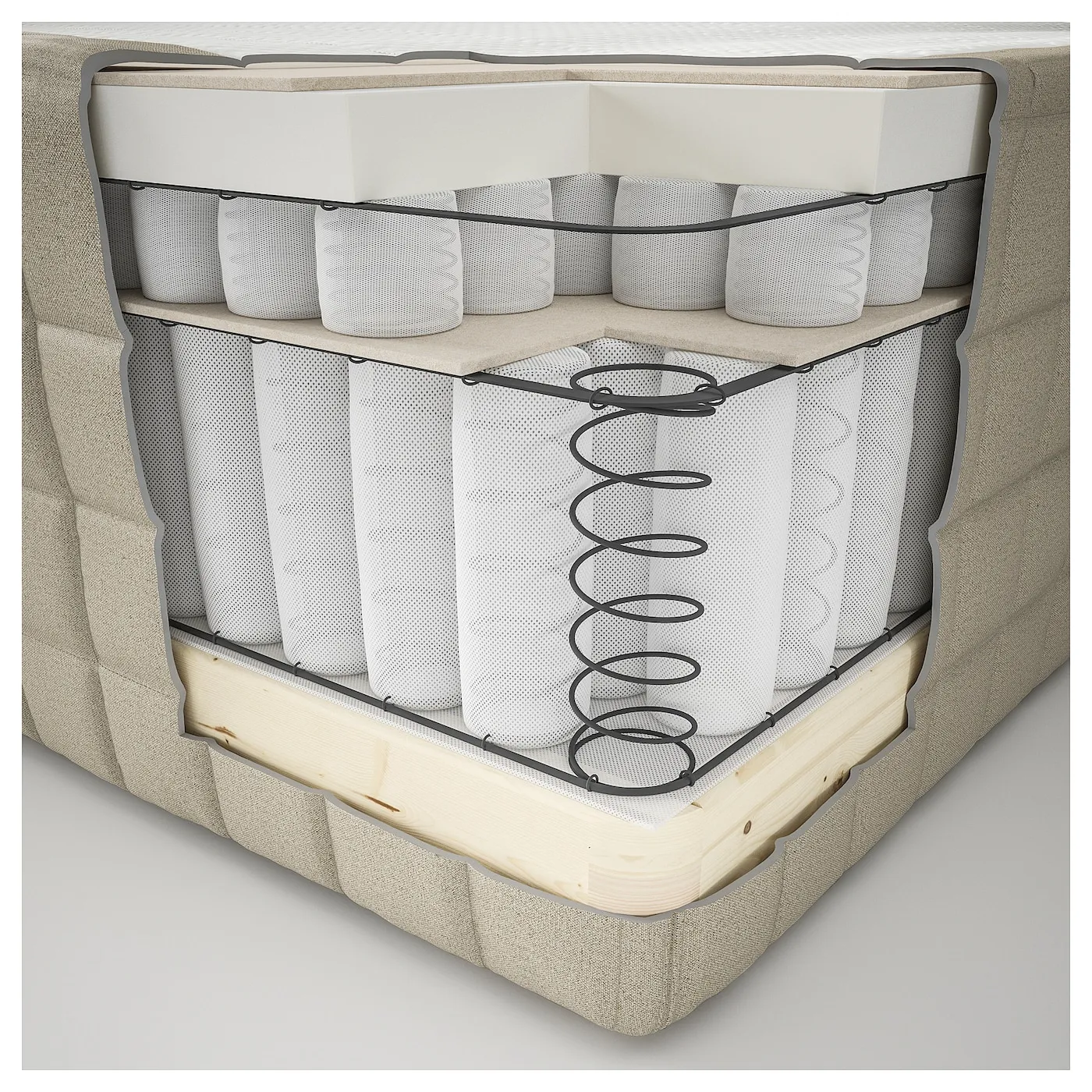 Улучшенный комфорт благодаря пружинному основанию Bonnell и двум слоям индивидуально упакованных пружин в верхней части, которые работают независимо, чтобы следовать за телом, обеспечивая поддержку в ключевых зонах.