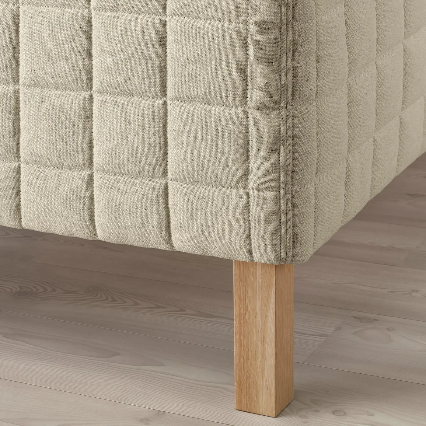 Матрас с деревянным основанием и пружинами не требует дополнительного основания или ламелей. Достаточно матрасной подложки и ножек, чтобы кровать была завершена.