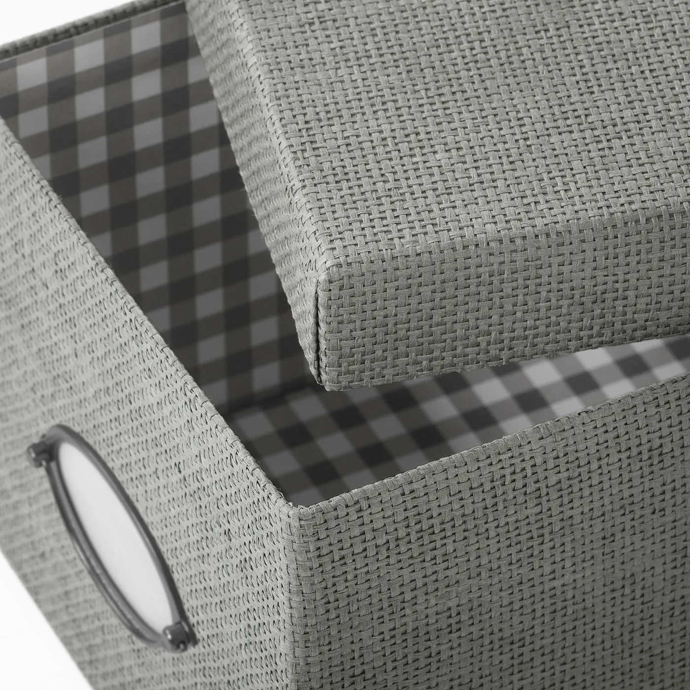 Как стильные коробки из прошлого. Этот размер идеально подходит для хранения украшений или косметики. Снаружи переплетенная бумага, а внутри добавлен акцент с клетчатой подкладкой.