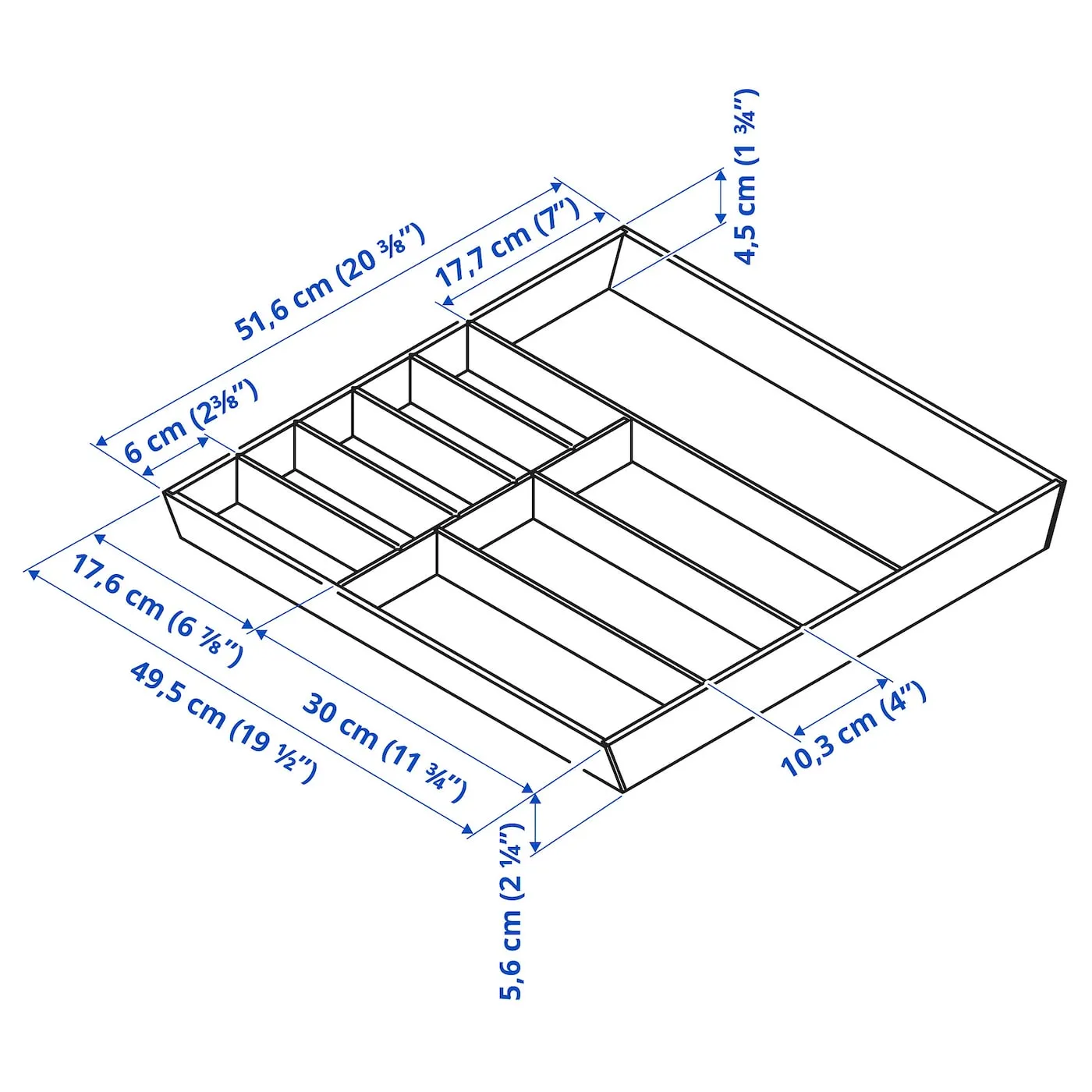 Может быть скомбинирован с другими органайзерами UPPDATERA, чтобы оптимально использовать пространство в кухонных ящиках.