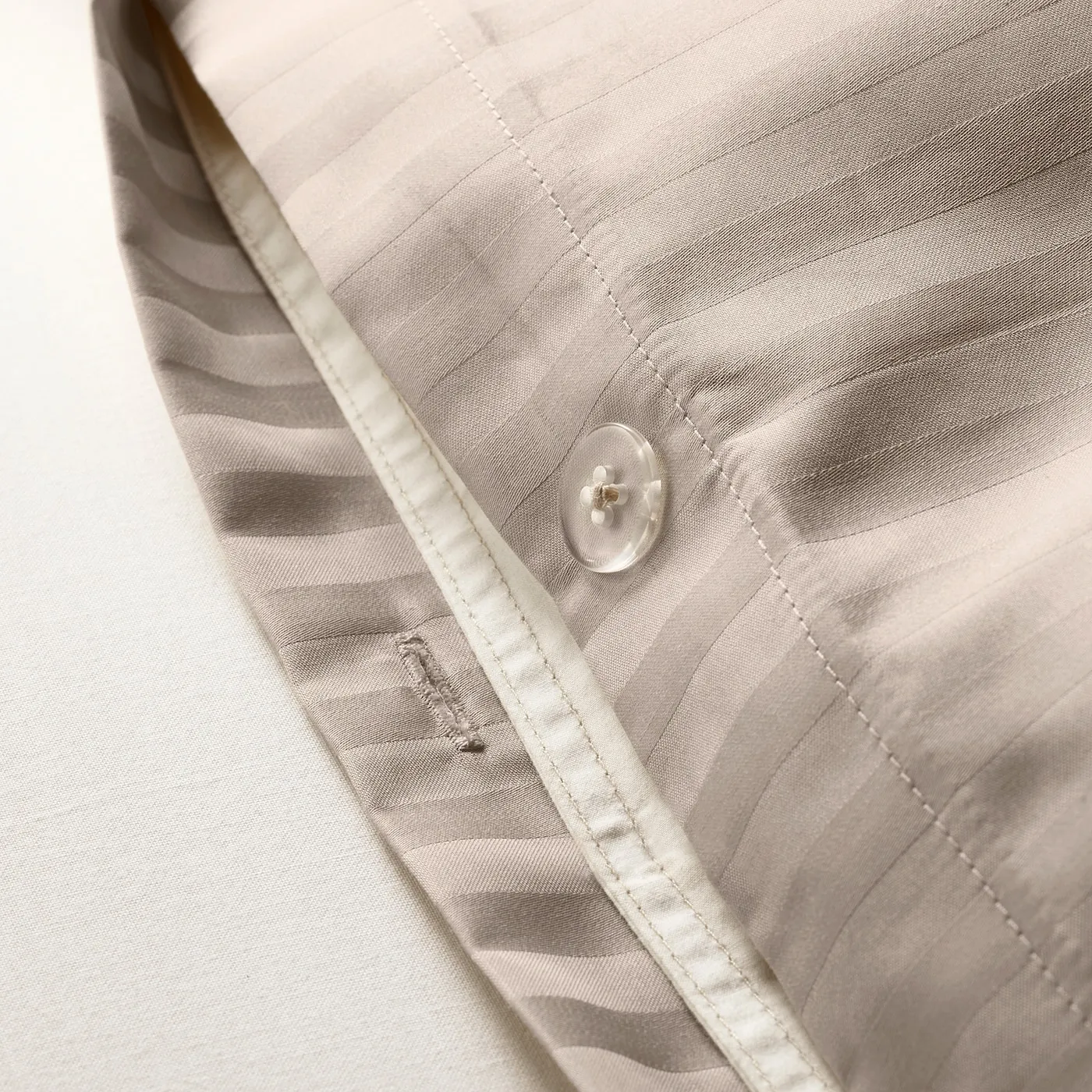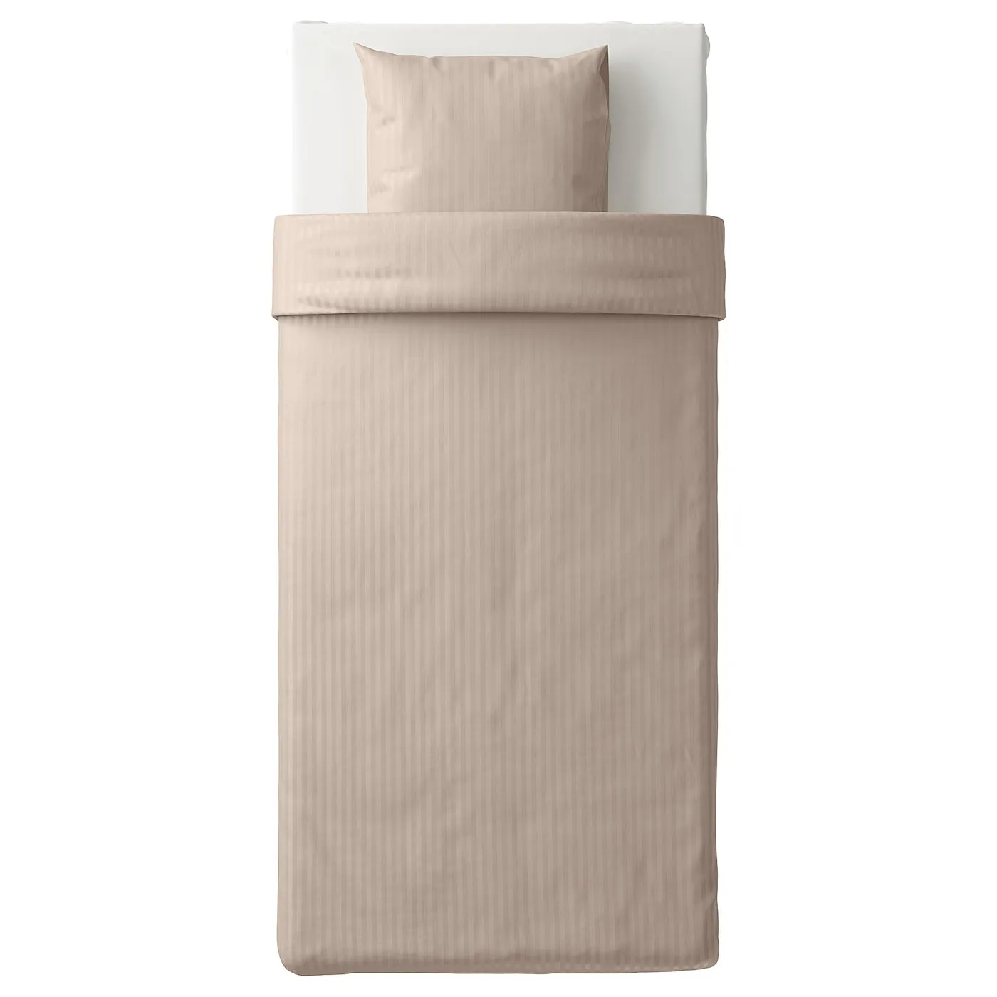 Комплект постельного белья в сатиновом переплетении с едва заметными полосками. Соткано из хлопка и лиоцелла, что придаёт ткани красивый блеск, поглощает влагу и создаёт мягкость на ощупь.