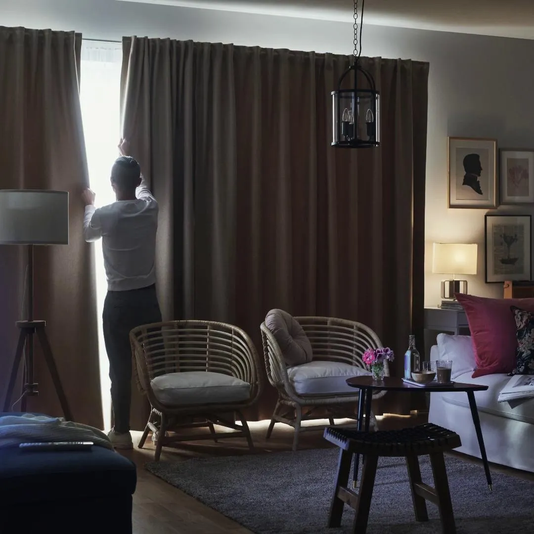 Эти шторы эффективно блокируют большую часть света и обеспечивают уединение как днем, так и ночью, закрывая обзор в комнату с улицы.