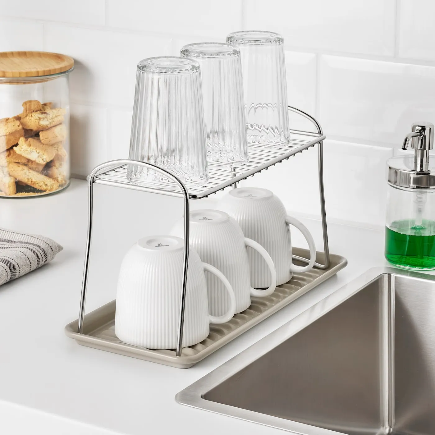 Отлично подойдет, если вам нужно дополнительное место для сушки бокалов и мелкой посуды. Если вы хотите разместить тарелки и столовые приборы, вы можете комбинировать её с другими полками из серии VÄLVÅRDAD.