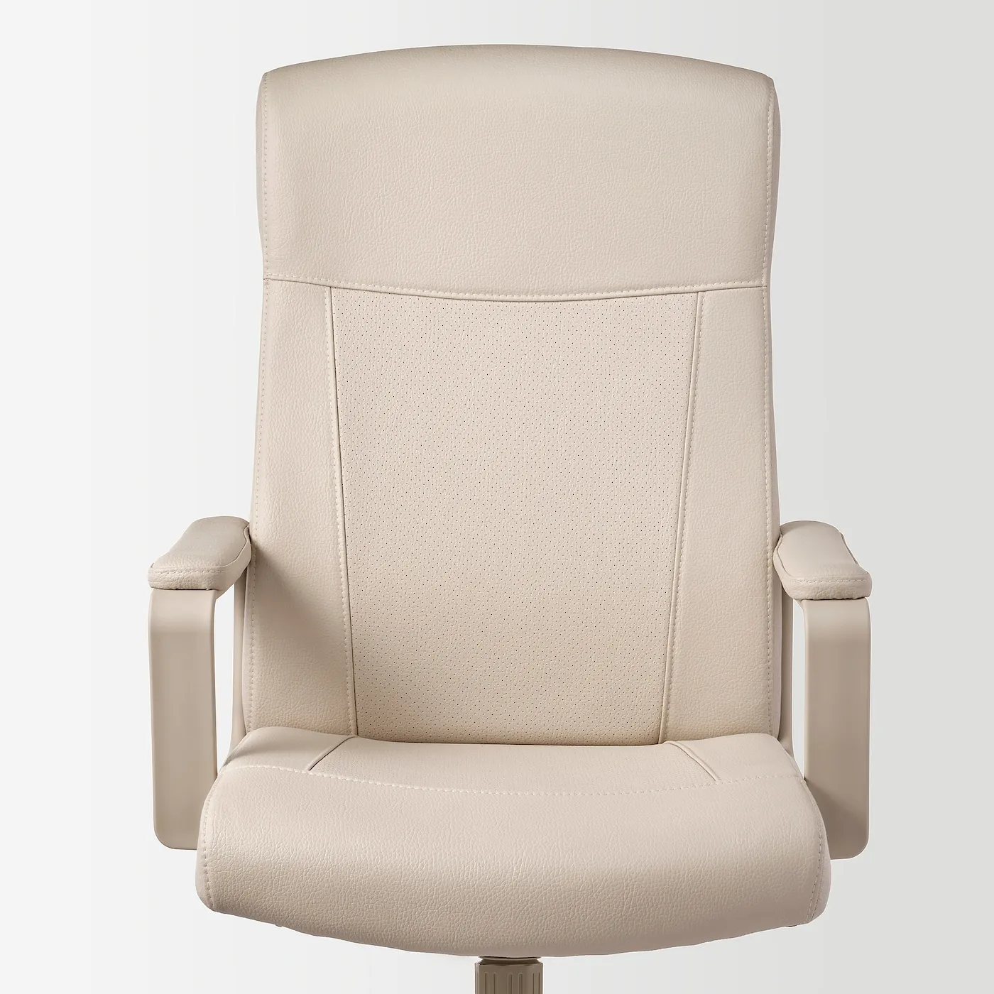 Кресло MILLBERGET на колесах обеспечит комфорт и функциональность во время работы за столом. Оно также отличается элегантным и щедрым дизайном, который гармонично вписывается в интерьер гостиной или спальни.
