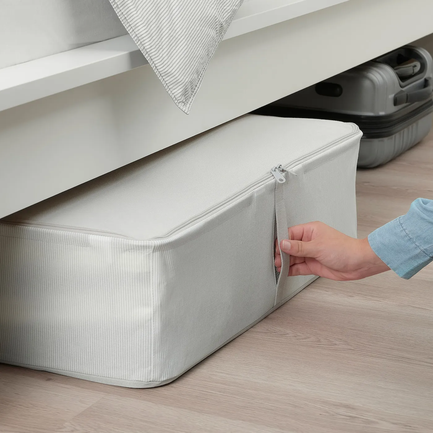 Тканевый чехол для хранения, идеально подходящий для сезонной одежды, дополнительных одеял и подушек, а также для любых других вещей, которые вы хотите защитить от пыли и грязи. Большой и прочный, идеально помещается под кроватью.