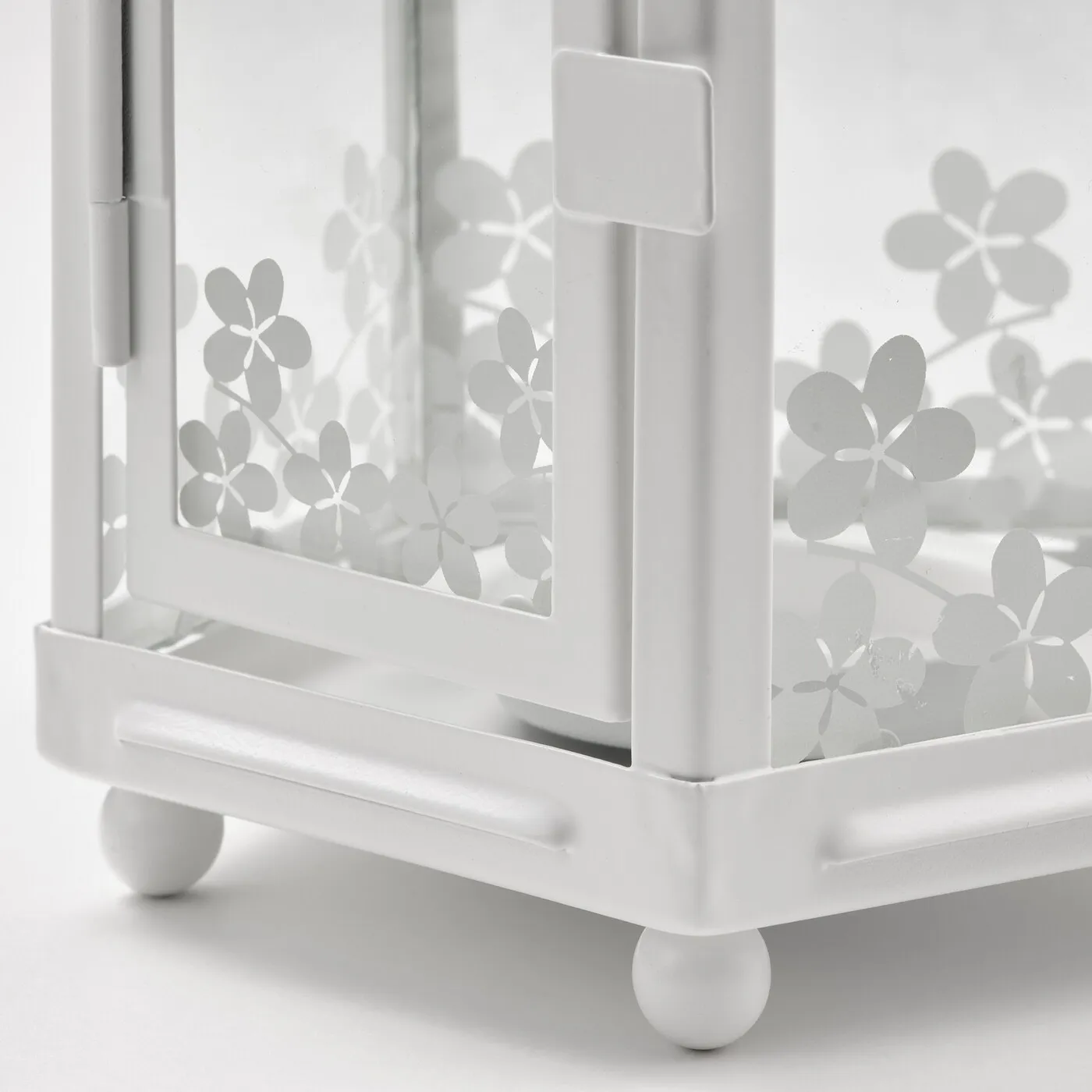 Тёплый свет свечи красиво пробивается сквозь узор на фонаре.