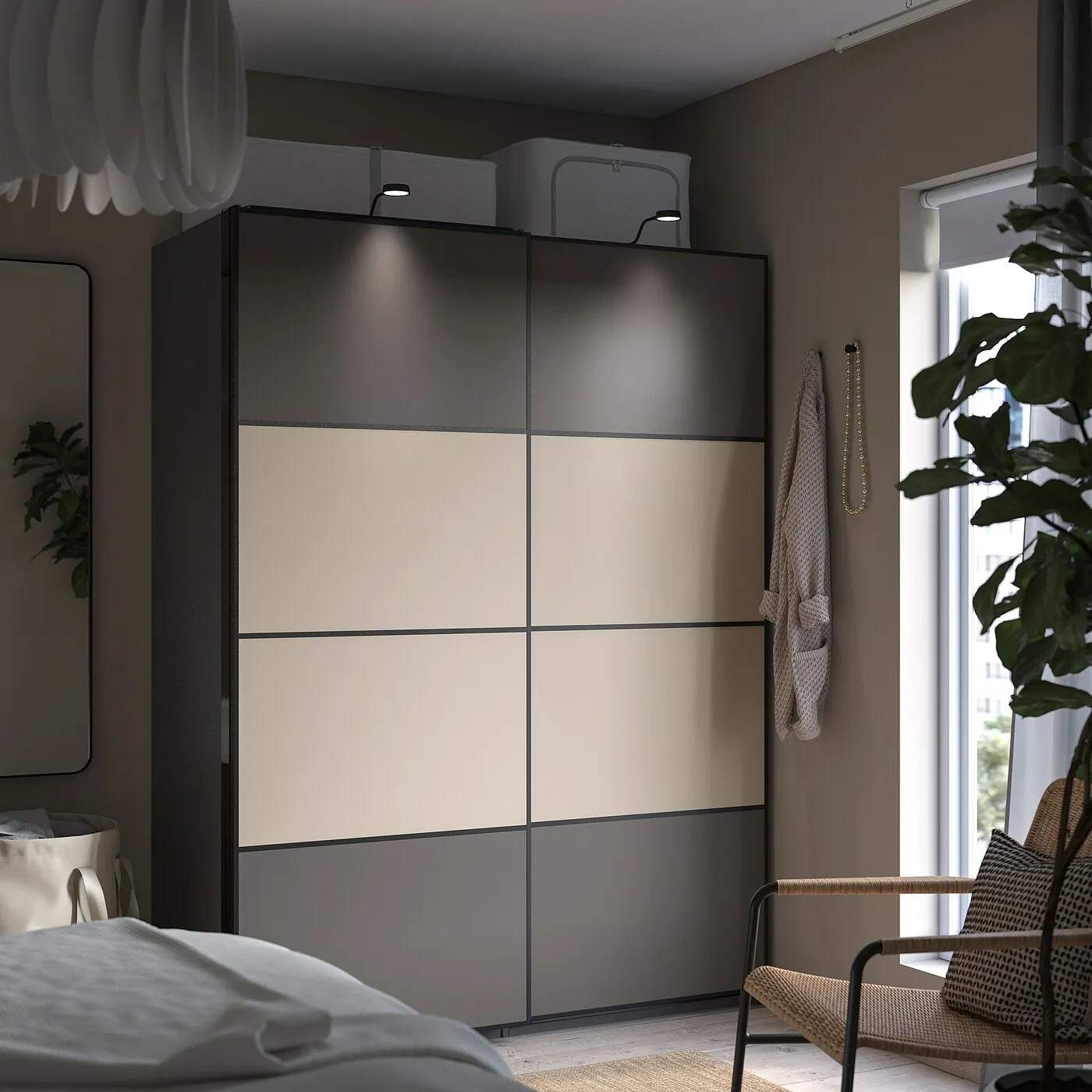 Этот классический, полуматовый дизайн доступен в трех вариантах: FORSAND распашная дверь, HASVIK раздвижная дверь и MEHAMN раздвижная дверь с панелями.