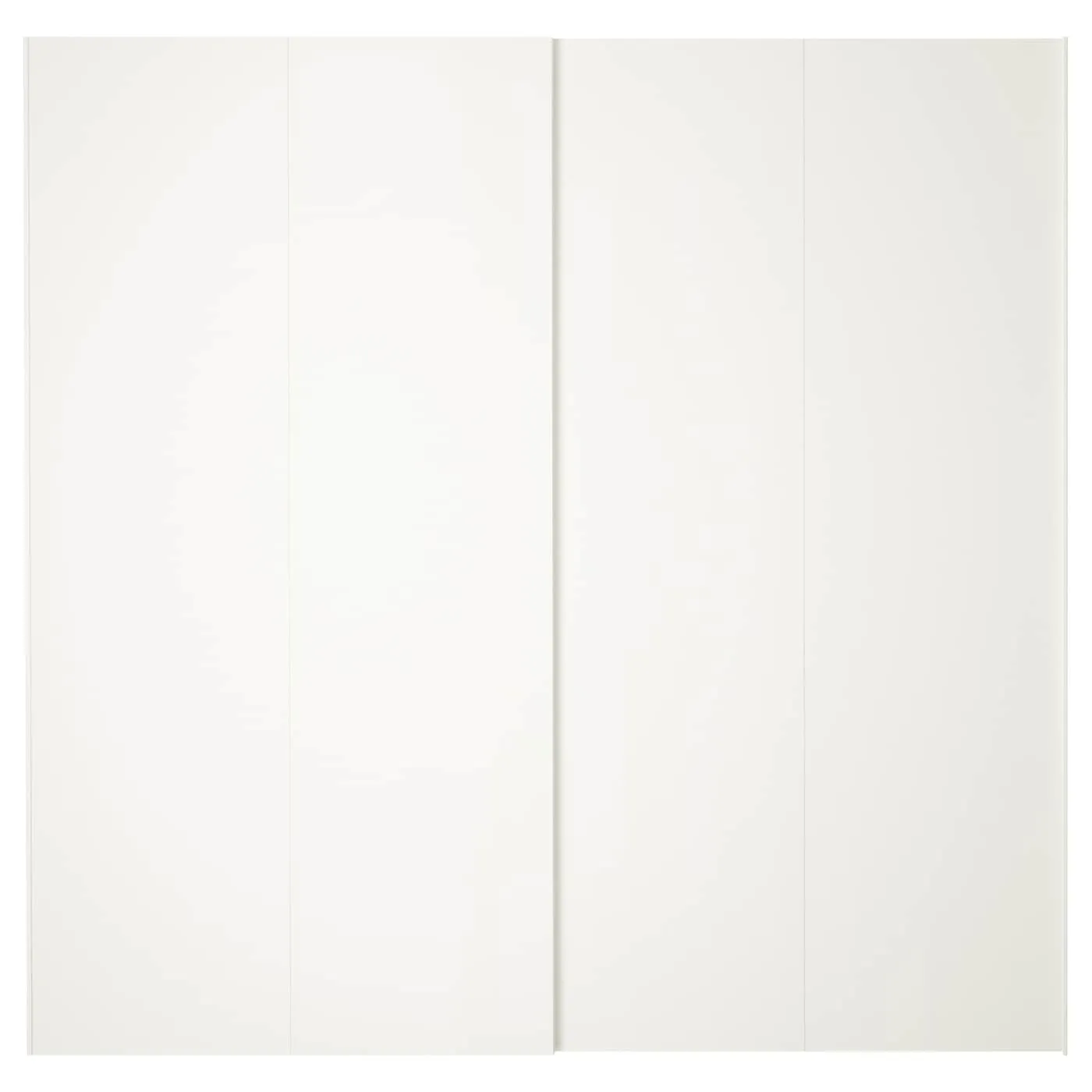 Матовые белые двери HASVIK придадут вашему гардеробу аккуратный вид и легко скользят по каркасу, не занимая дополнительное место на полу.