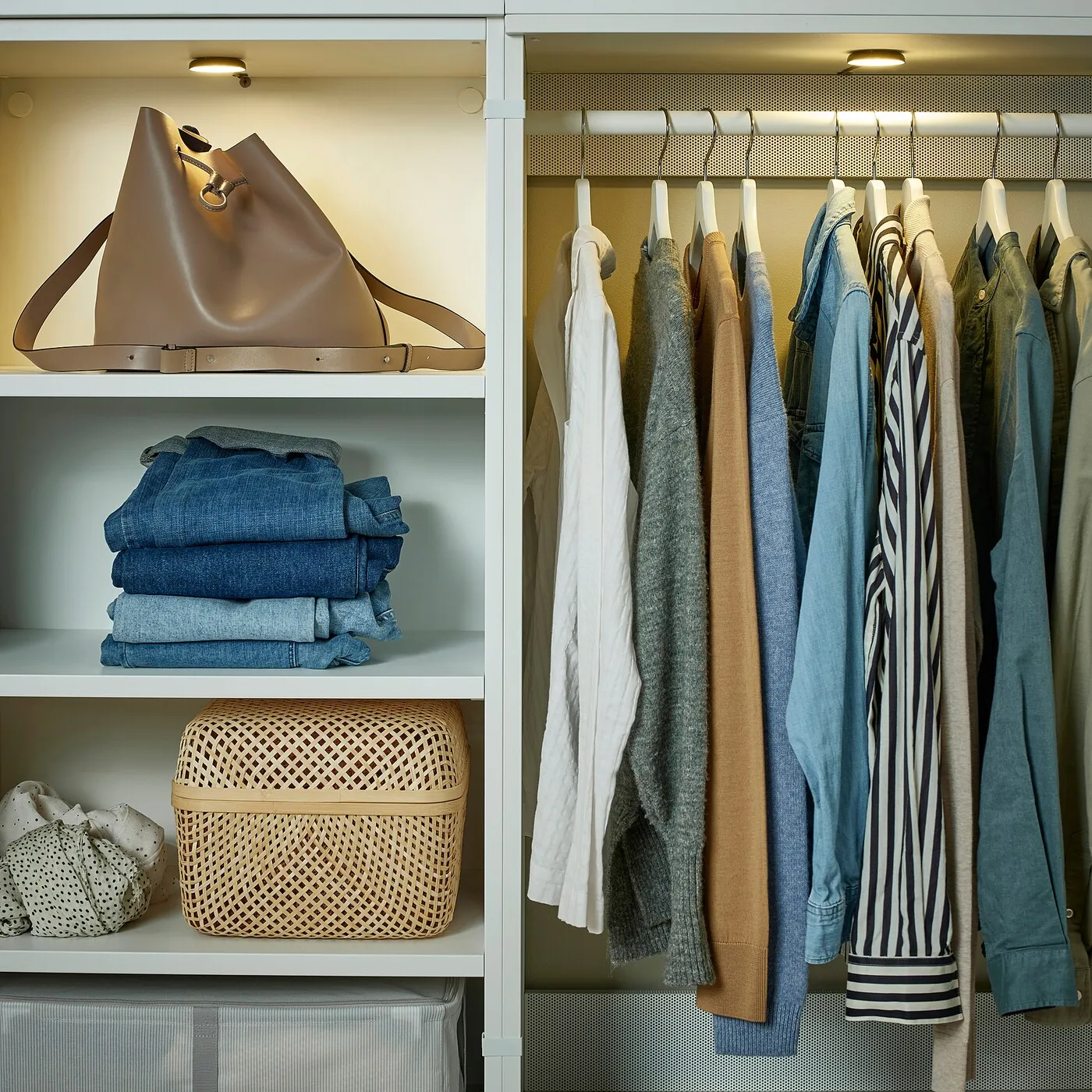 Подходит для использования в ограниченных пространствах, таких как шкафы и гардеробы, так как светодиодный источник излучает лишь малое количество тепла.