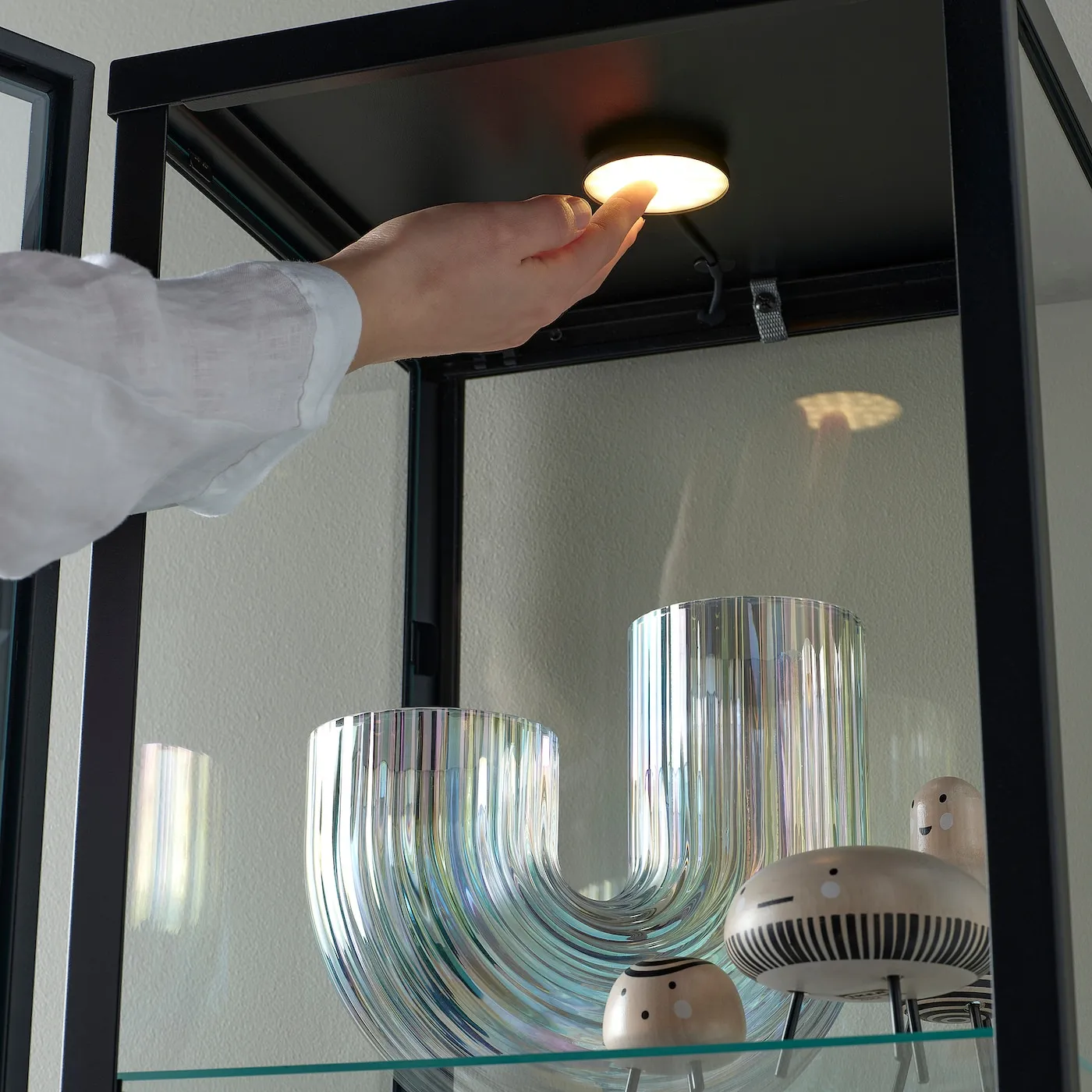 Прожектор STRIMSÄV идеально подходит для подсветки шкафов и стеллажей. Легко крепится с помощью гелевой подушки. В комплект входят кабельные зажимы, драйвер и крышка для отверстий – включить и выключить его можно одним нажатием на лампу.