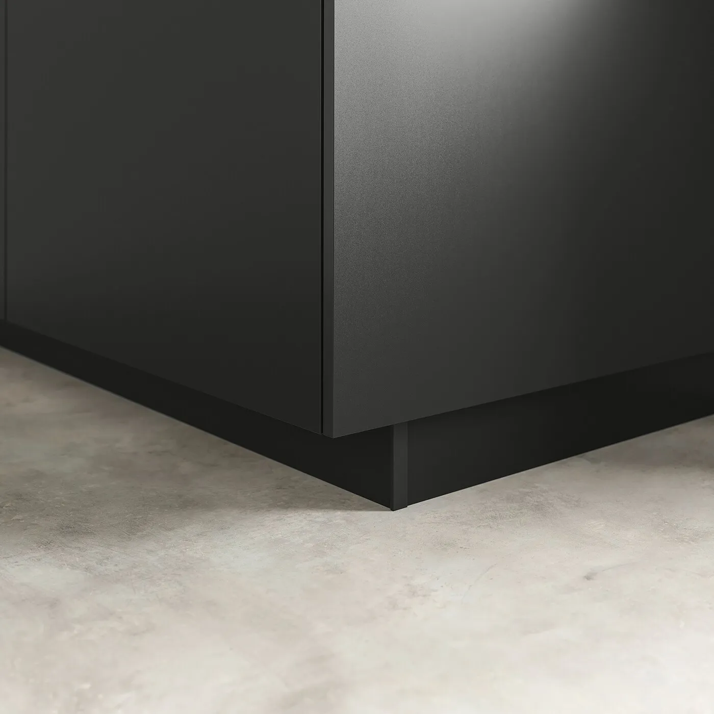 Этот цоколь идеально сочетается с нашими матовыми черными фасадами кухни. Он закрывает зазор между шкафами и полом, придавая вашей кухне единый, гармоничный вид.