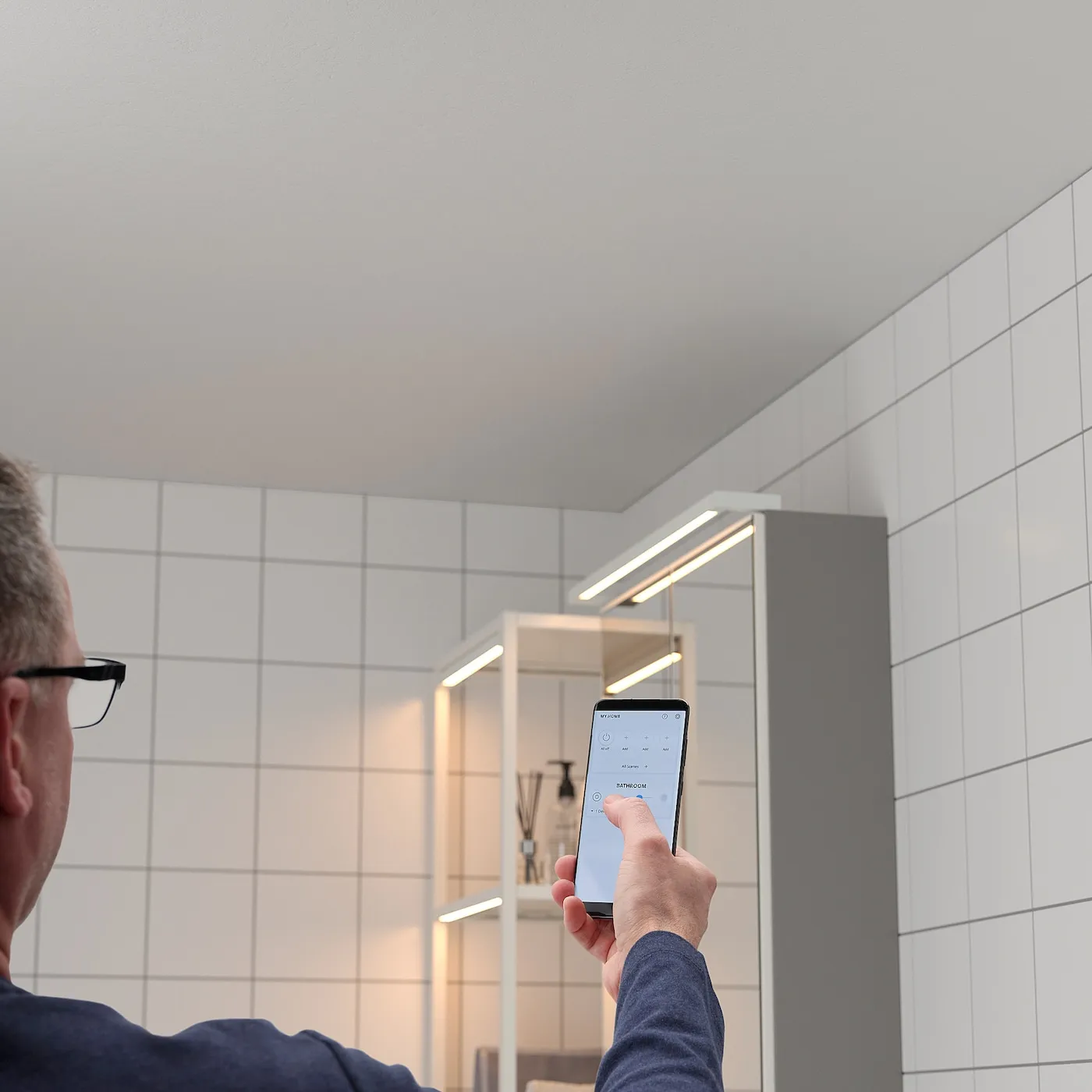 С этой светодиодной световой полосой вы получаете как рабочий свет, так и приятную атмосферу в вашей ванной ENHET — утренние и вечерние процедуры станут более спокойными, безопасными и лёгкими.