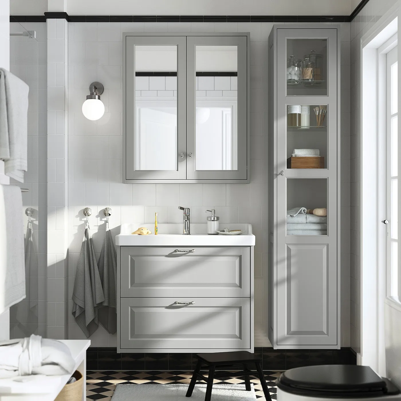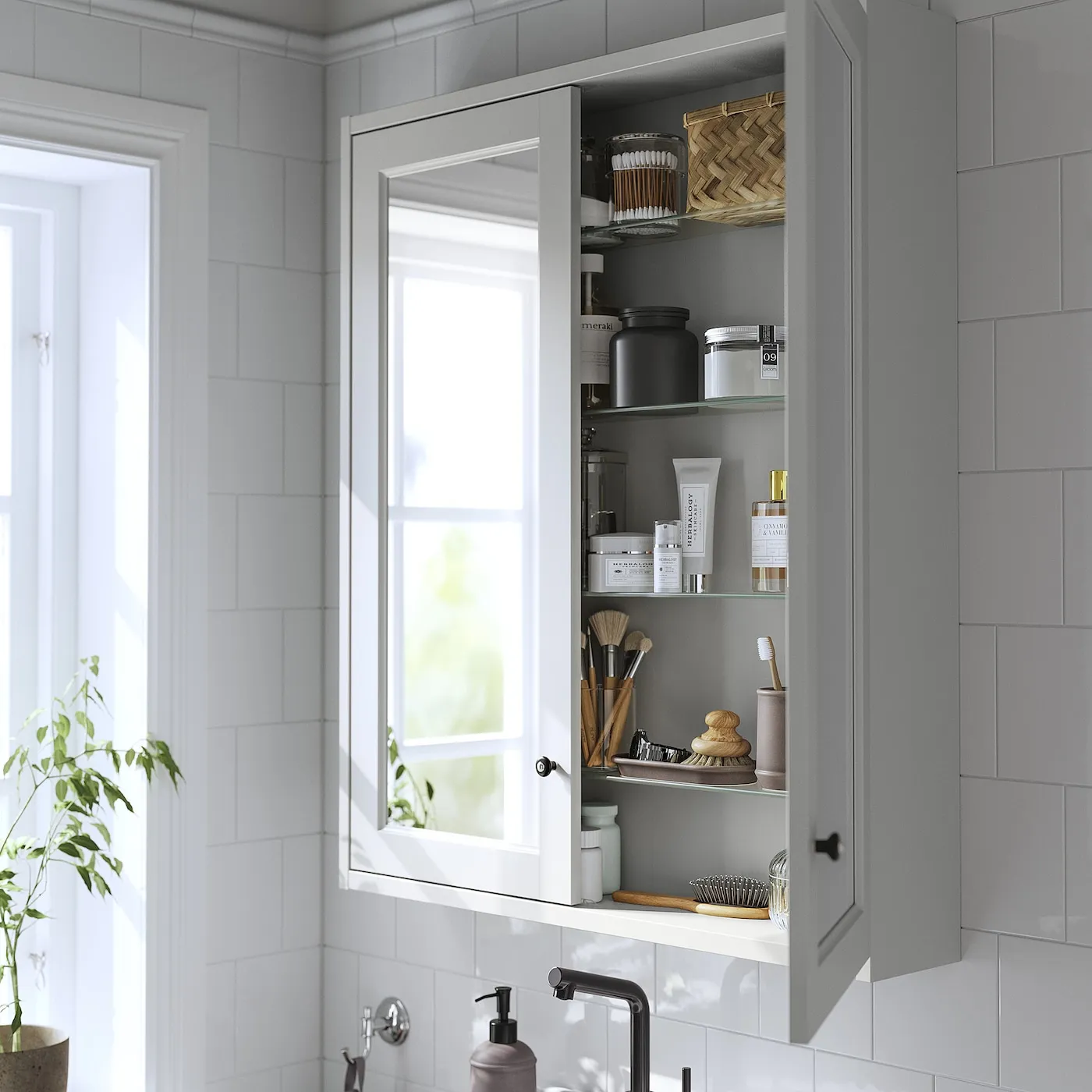 Классические детали, такие как скошенные панели, делают серию для ванной комнаты TÄNNFORSEN выражением вашего уникального стиля. Этот неглубокий шкаф с зеркалом поможет подготовиться к новому дню, занимая при этом минимум пространства.