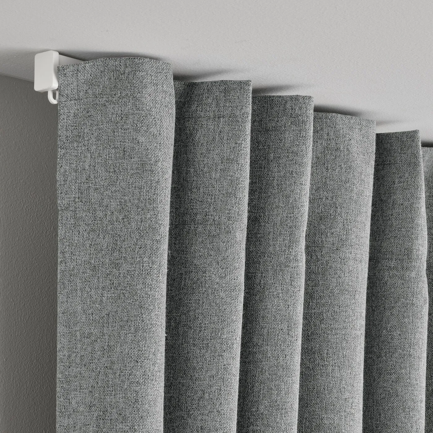 Обычно рекомендуется использовать 15 бегунков и крючков для каждой шторы шириной 135 см. Можно уменьшить или увеличить количество, чтобы создать узкие или более пышные складки.