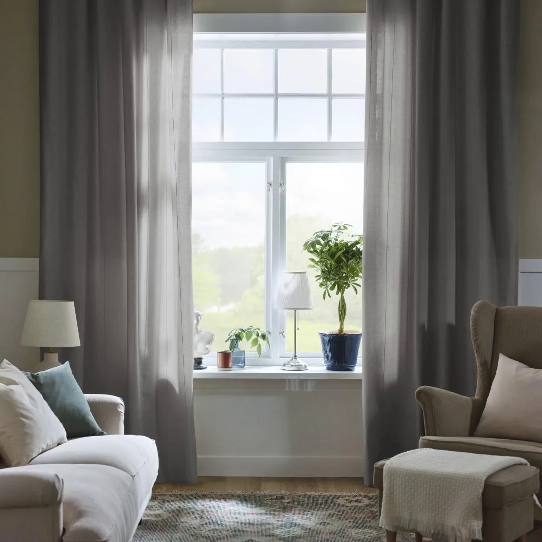 Поскольку ткань слегка садится при стирке, рекомендуется сначала постирать шторы перед обрезкой или подшиванием.