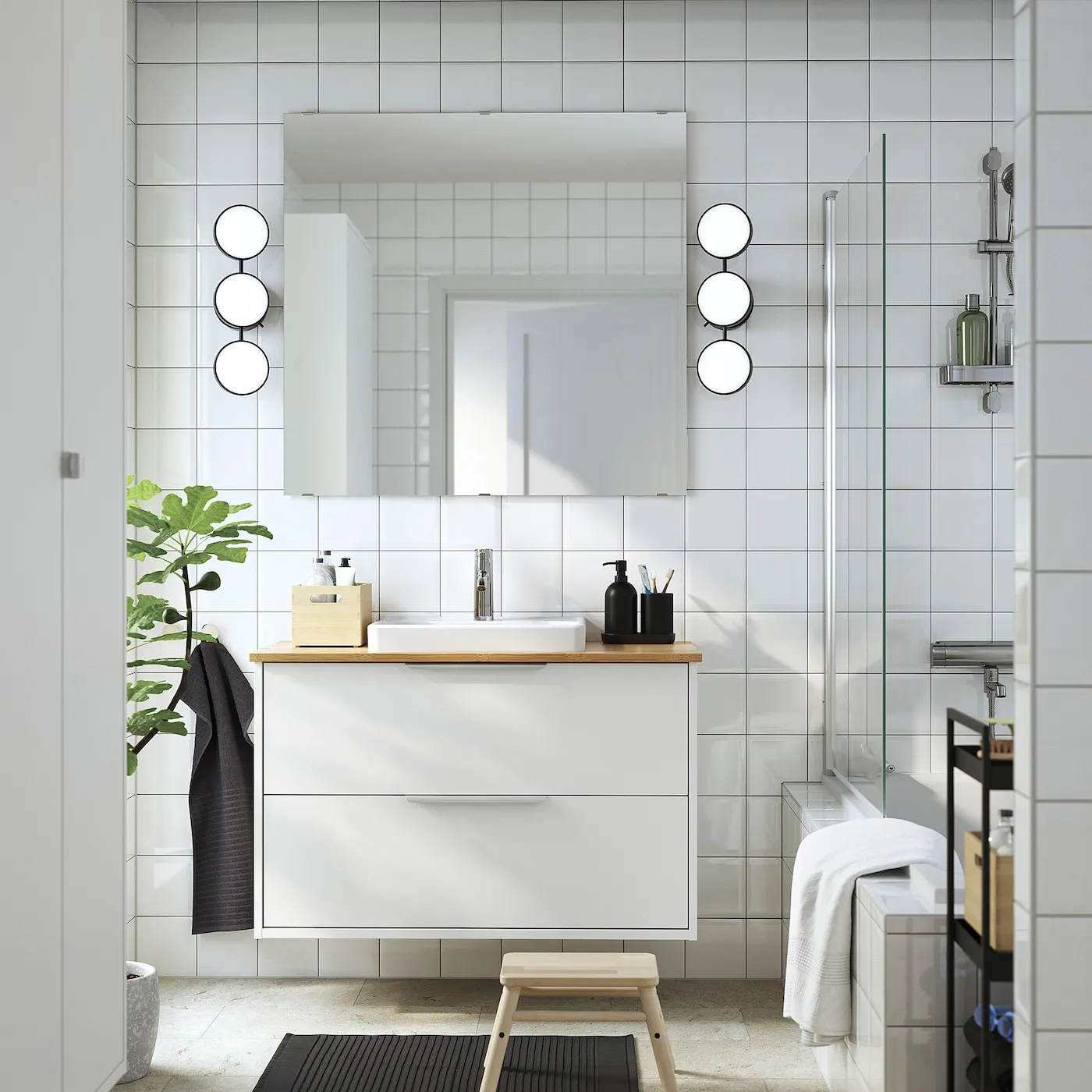 Столешница из бамбука с уникальным узором придаёт вашей ванной естественное и тёплое настроение.