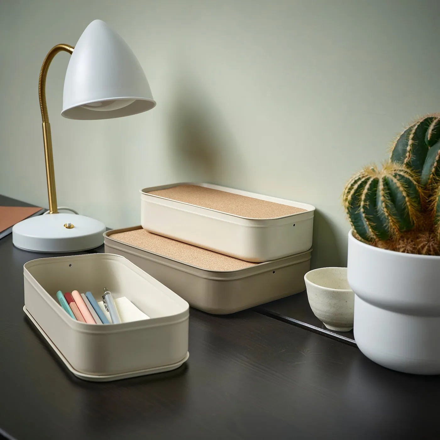Этот органайзер поможет вам поддерживать рабочий стол в порядке. Крышка из пробки придаёт изделию элегантность и удерживает другие коробки на месте, если вы решите сложить их друг на друга.