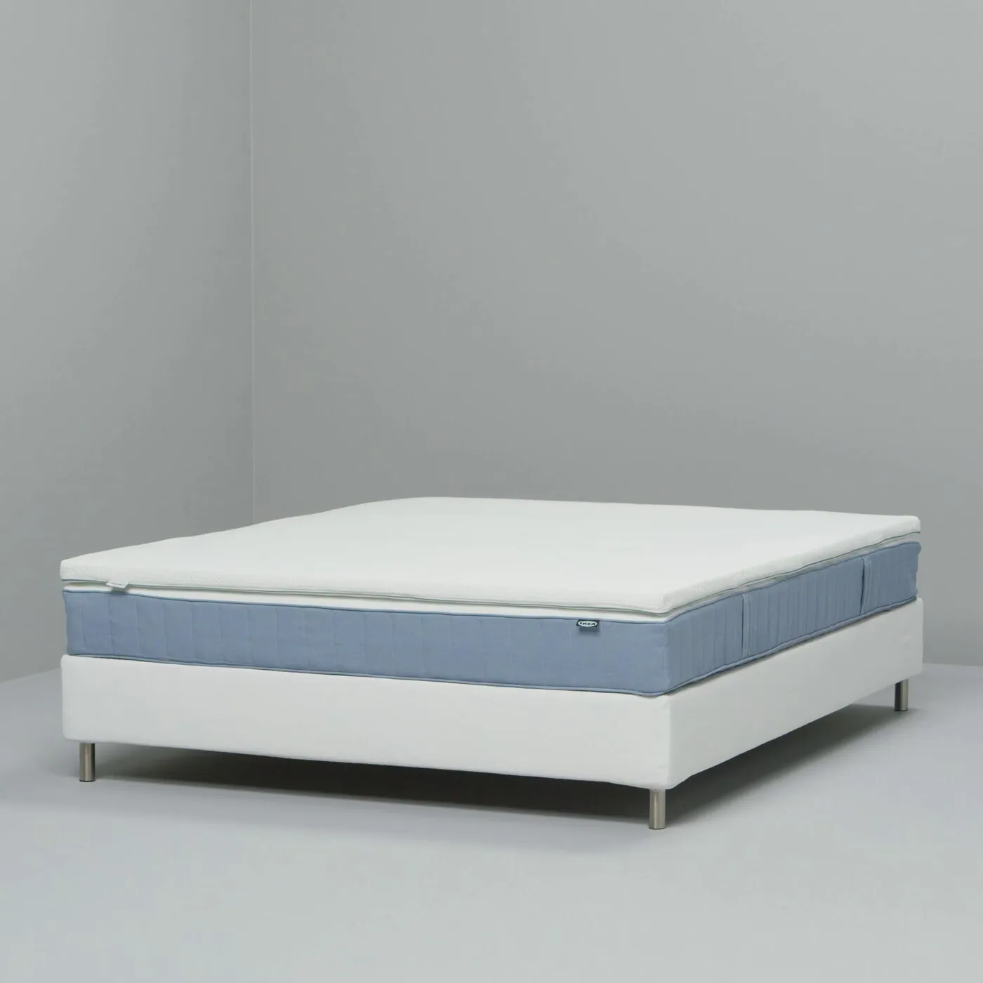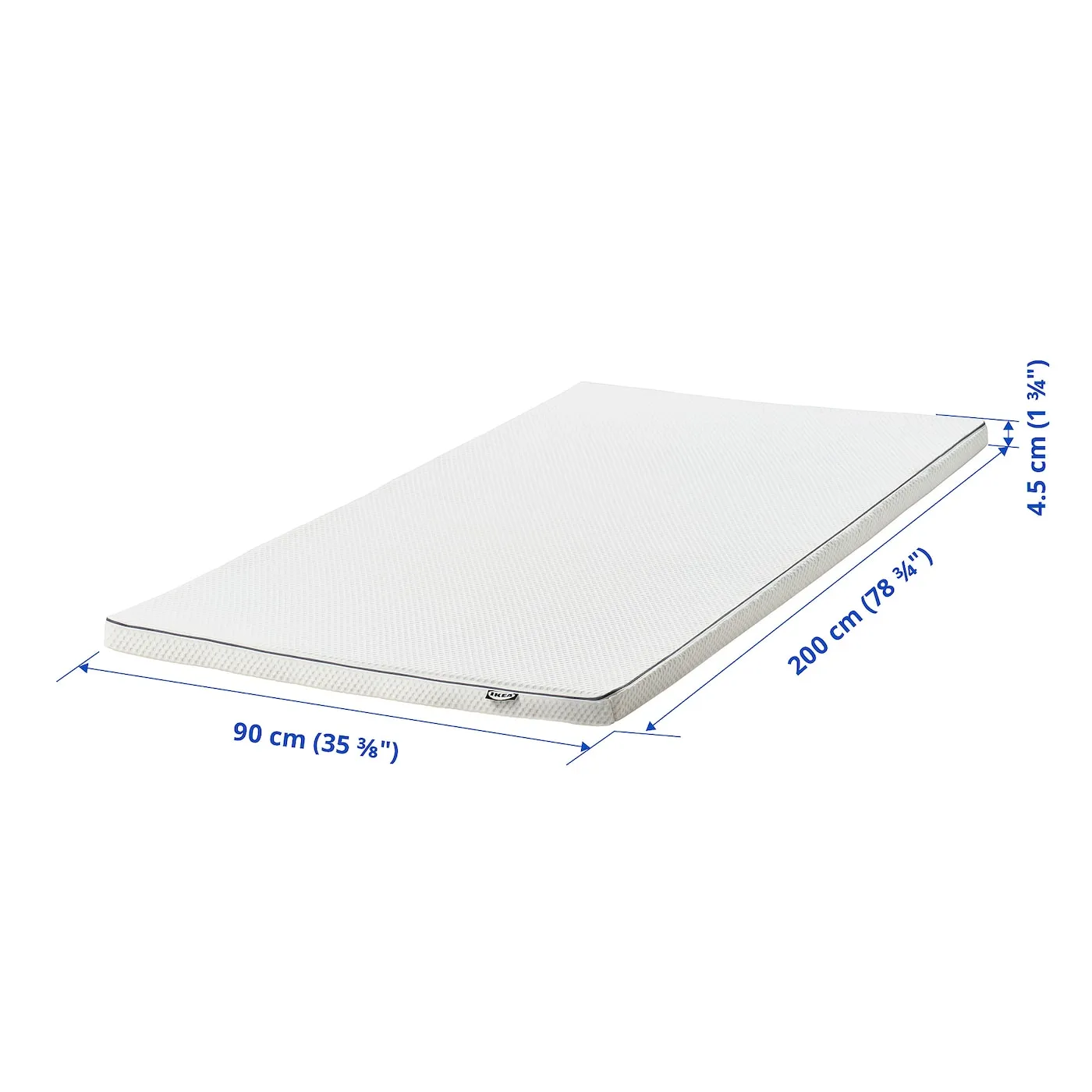 Наматрасник толщиной 4.5 см с тёплой и прохладной сторонами, а также с пеной с эффектом памяти, которая снимает напряжение с мышц и способствует расслаблению, особенно если вы спите спокойно. Эластичный и легко моющийся чехол подстраивается под ваши движения.