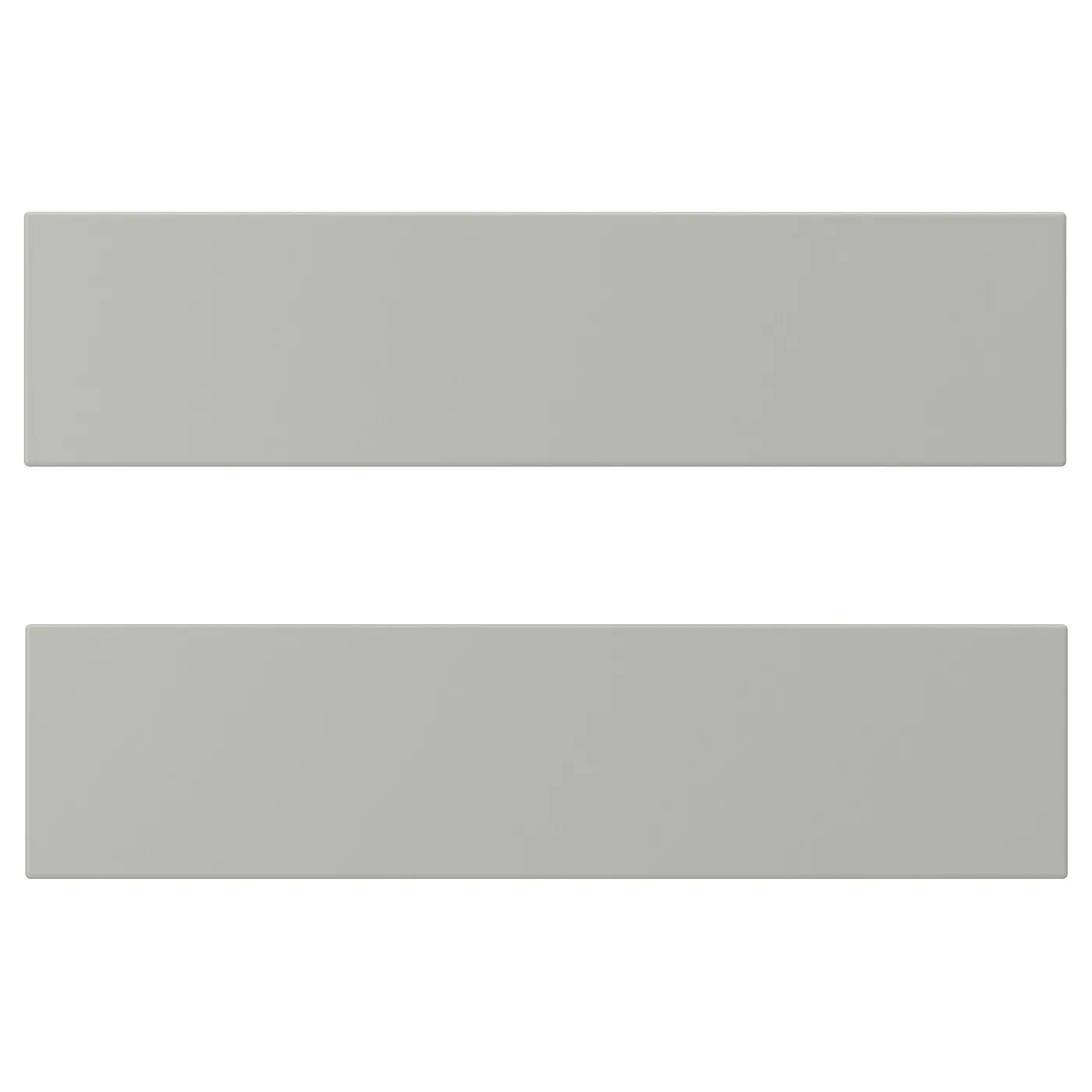 Фасады для кухни HAVSTORP в классическом светло-сером исполнении выделяются своими четкими линиями и гладкой поверхностью, создавая нейтральный и гармоничный вид, который можно легко персонализировать.