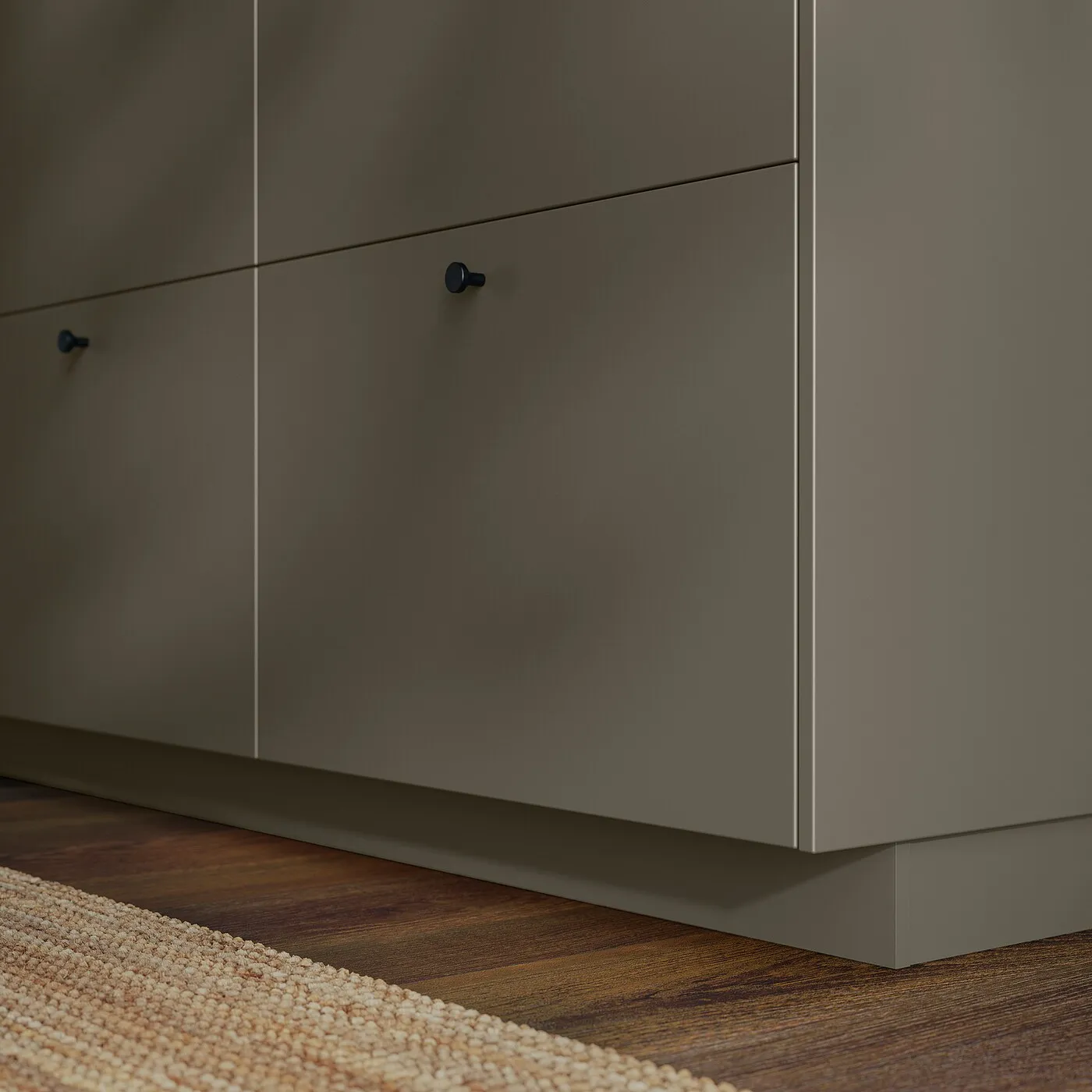 Фасады HAVSTORP в темно-коричневом/бежевом оттенке имеют четкие линии и гладкую поверхность. Цоколи придают вашей кухне завершенный и гармоничный вид, создавая ощущение вечной классики.