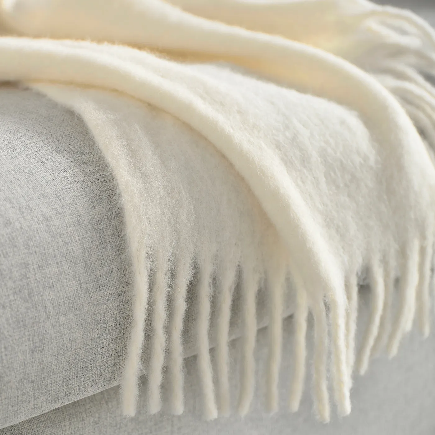 Мягкий, пушистый и легкий – этот плед цвета белый с оттенком, с ворсистой поверхностью, похожей на мохер, согреет вас. Изготовлен из прочного переработанного полиэстера, который быстро сохнет и сохраняет форму после стирки.