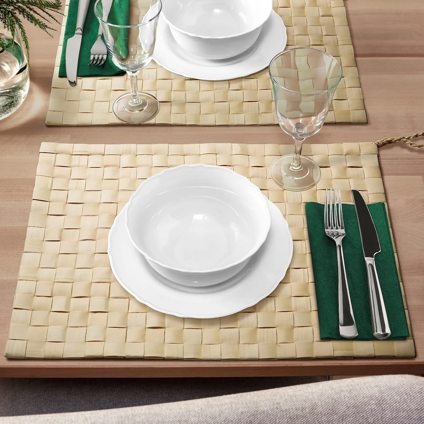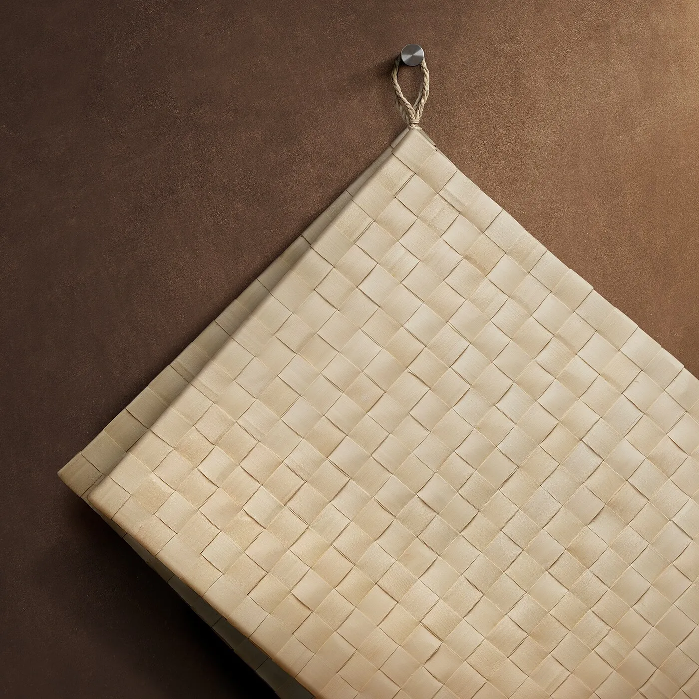 Украсьте свой стол подставками ручной работы из сухих листьев пальмиры. Плетение в клетку привлекает внимание и добавляет естественности вашей сервировке, создавая уютную и гостеприимную атмосферу.