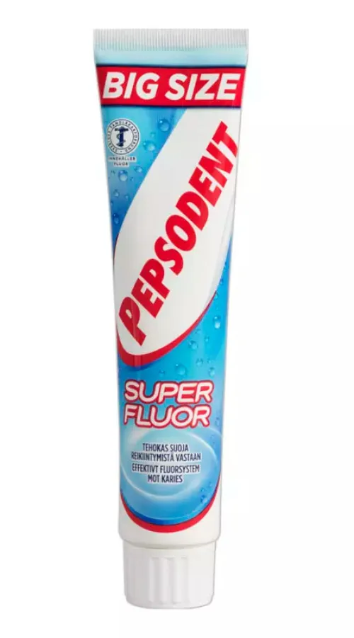 Pepsodent Super Fluor - это мягкая на вкус и свежая зубная паста с фтором. Фтор уменьшает растворение зубной эмали при воздействии кислот и, при регулярном использовании, помогает предотвратить кариес. У вас будет чистый рот и приятное свежее дыхание. Размер упаковки 125 мл.