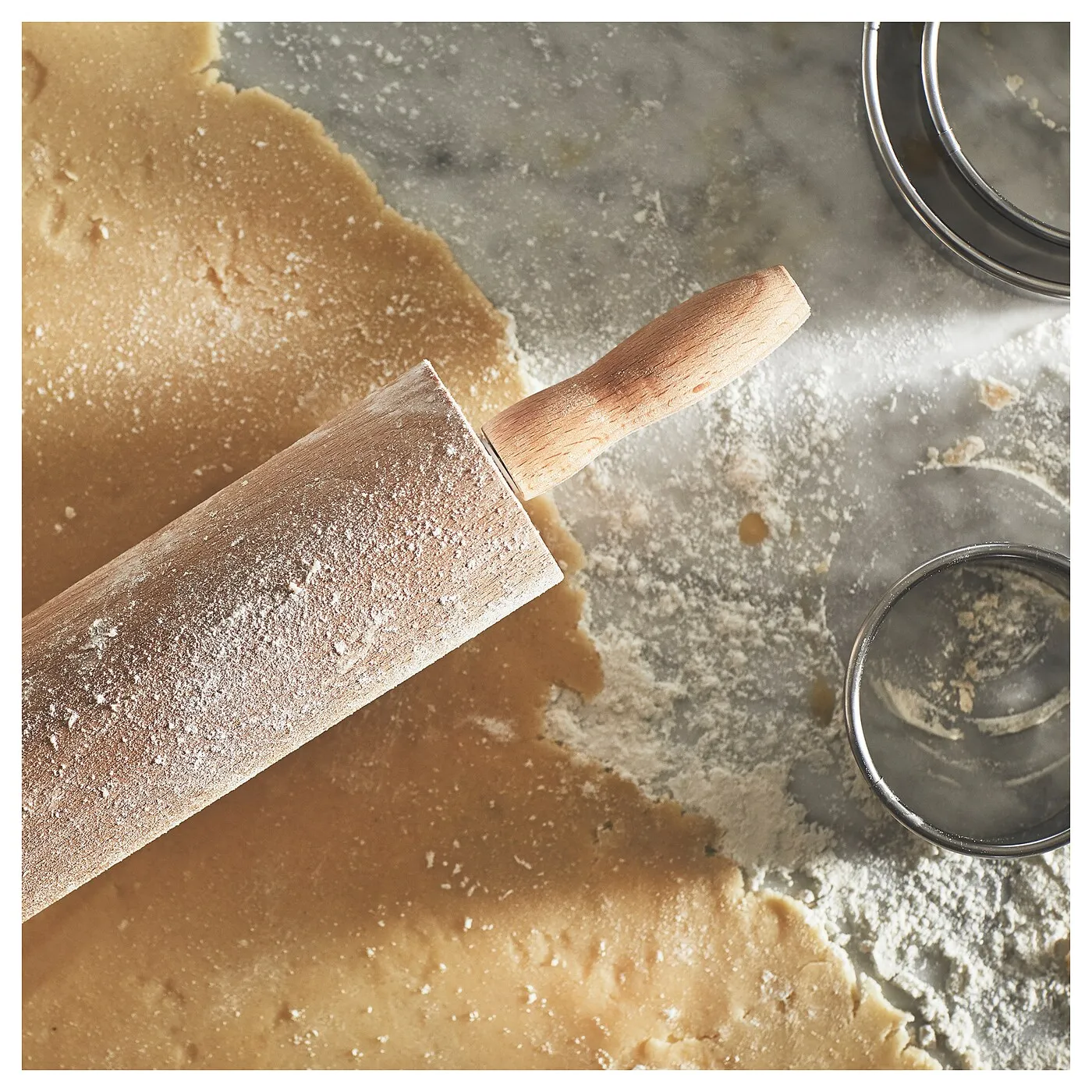 С помощью классической скалки из массива бука можно легко и равномерно раскатывать тесто. Эта скалка отлично подходит как для пиццы, так и для пряников, а после использования её можно просто протереть влажной тканью.