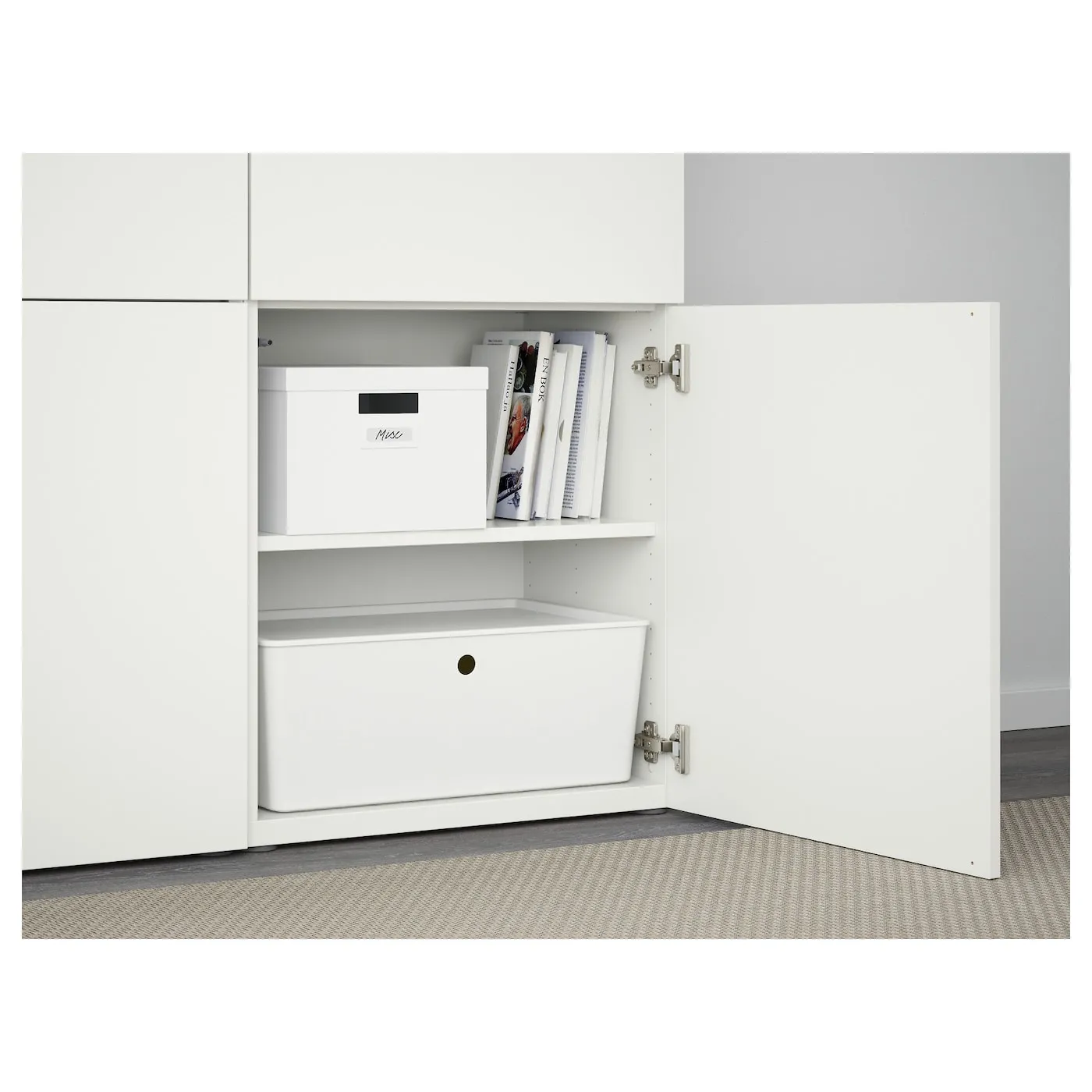 If you choose the soft closing function for your BESTÅ, we recommend complementing the fronts with knobs/handles to make the drawers/cabinets more convenient to open.