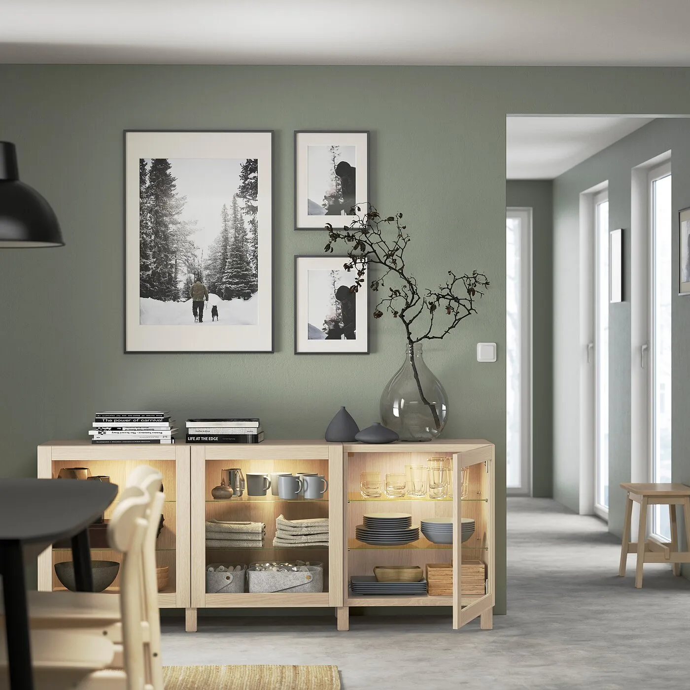 Эта комбинация состоит из нескольких отдельных модулей. Используйте верхнюю панель BESTÅ, продается отдельно, чтобы скрыть стыки между каркасами и создать цельный образ.