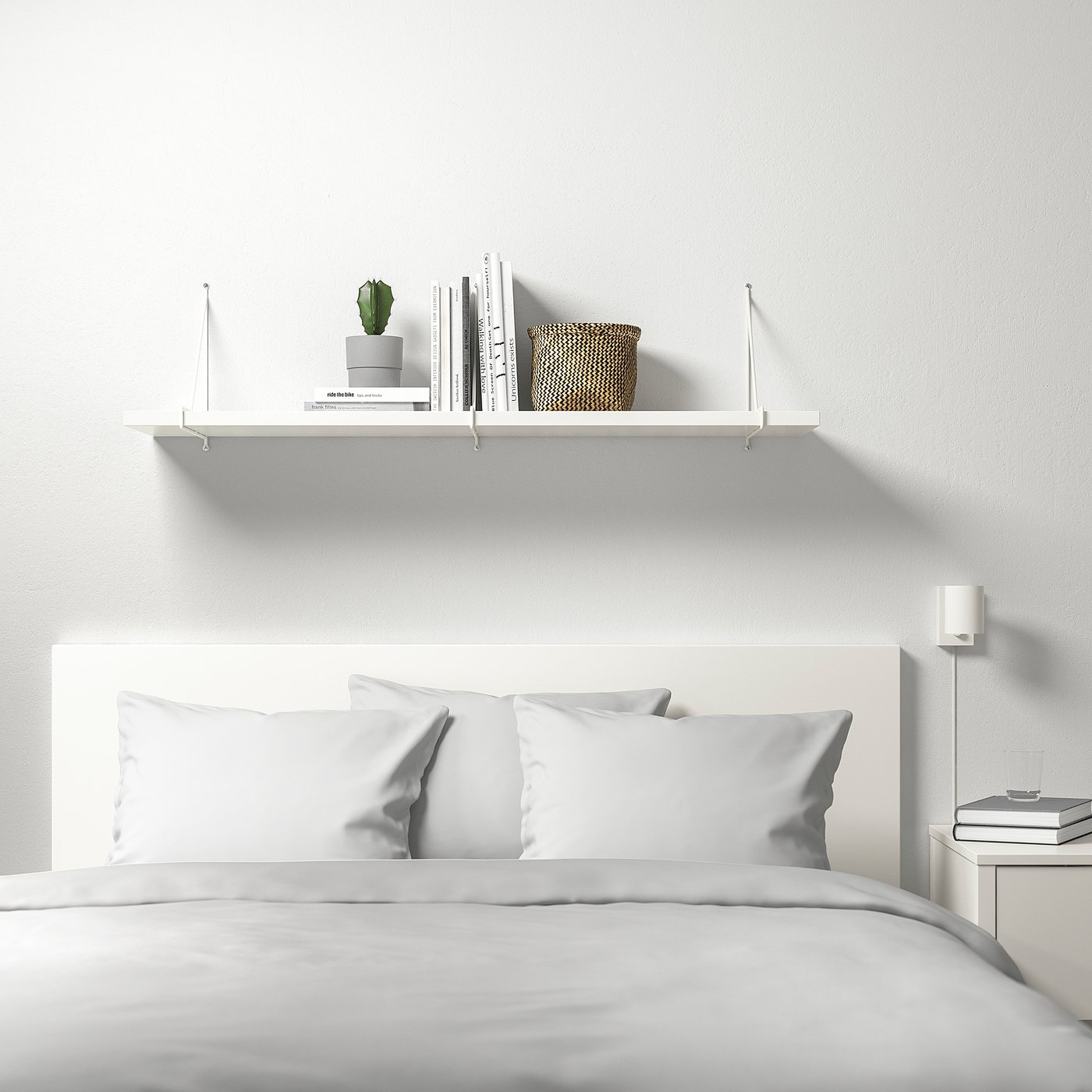 Полка длиной 120 см выдерживает максимум 20 кг при поддержке 3 кронштейнами и максимум 10 кг при поддержке 2 кронштейнами, при правильной установке на стену.
