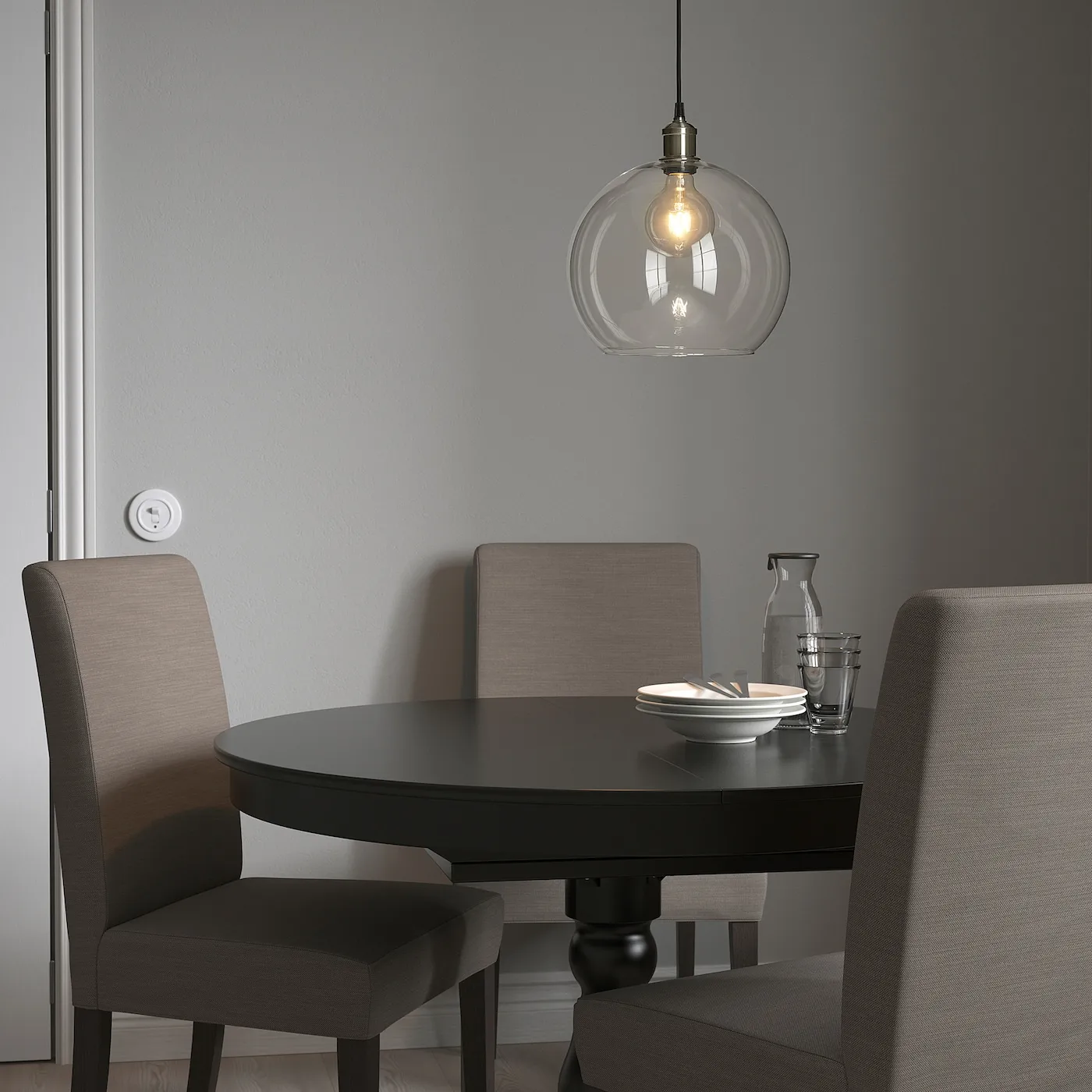 Эта стильная подвесная лампа с простыми линиями и мягко изогнутым абажуром из прозрачного выдувного стекла станет отличным дополнением вашего интерьера. Оснастите лампу подходящей вам лампочкой и повесьте её над столом или кухонным островом. А может, несколько ламп расположить в ряд?