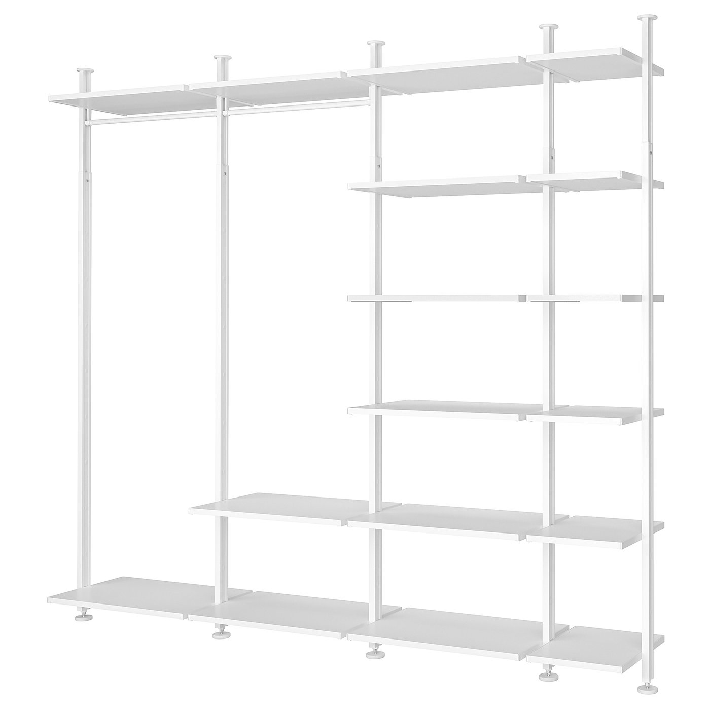Превратите ваше решение для хранения ELVARLI в дом для книг, одежды или красивую витрину для декоративных предметов. Полки, штанги и регулируемая стойка помогут вам использовать всё пространство от пола до потолка.