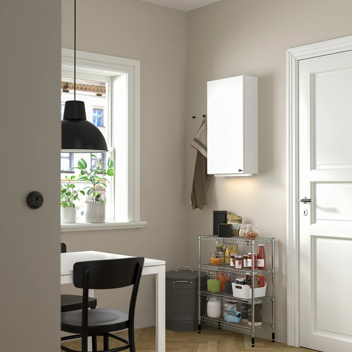 Система хранения OMAR предоставляет множество места для вашей кухни, ванной и коридора. На металлических полках удобно и безопасно хранить продукты или полотенца — они всегда на виду. Легко собирается и может быть дополнена элементами из той же серии.