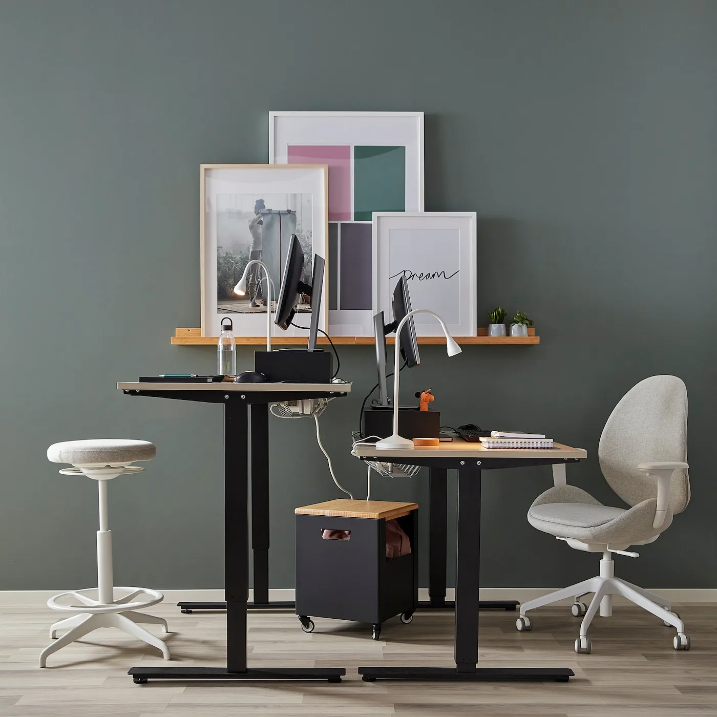 Перемена позиций с сидячей на стоячую полезна для здоровья, а рукоятка позволяет задействовать руки при регулировке высоты. Движение тела улучшает ваше самочувствие и продуктивность.