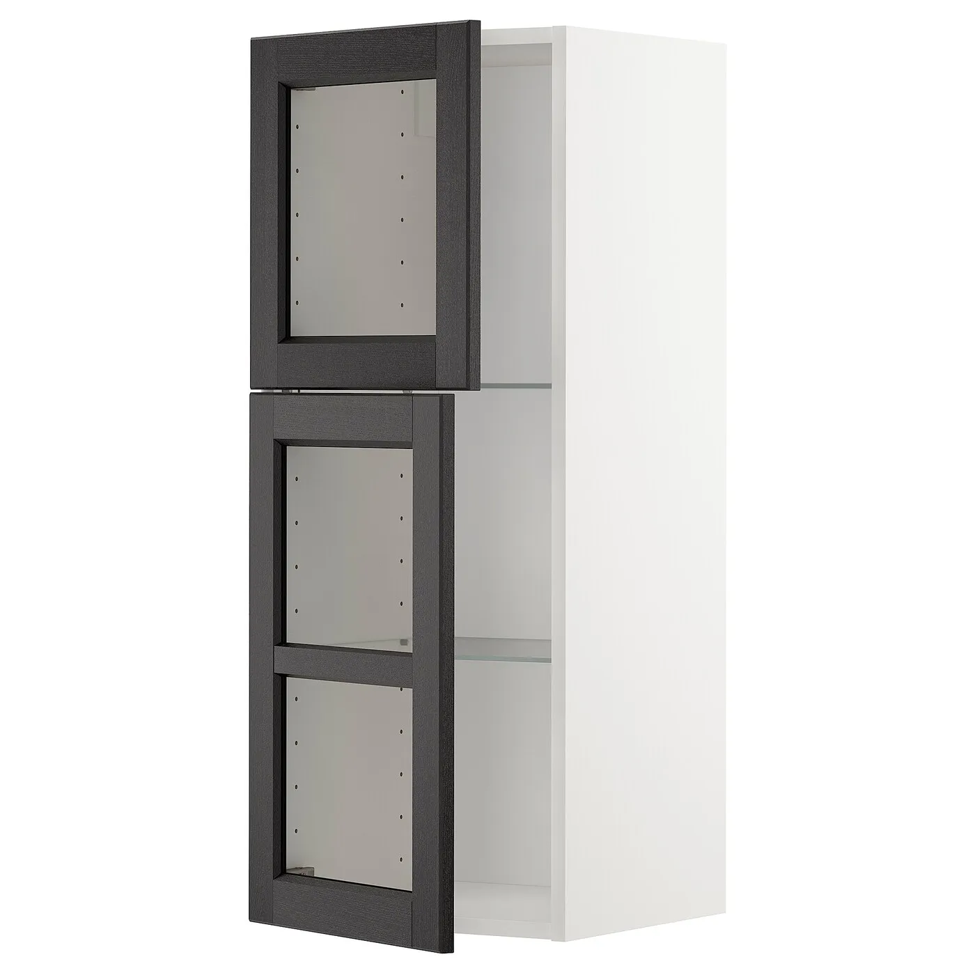 Кухонная система METOD предоставляет безграничные возможности для создания кухни вашей мечты. В сочетании со стеклянными дверцами LERHYTTAN с черной окраской и скошенными гранями, ваша кухня приобретает теплый и традиционный облик.