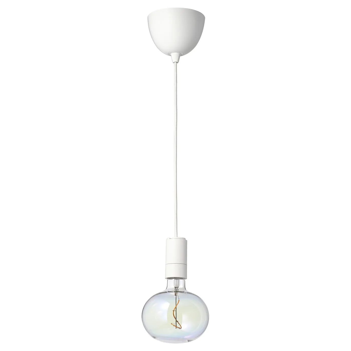 Для тех, кто хочет яркий и необычный подвесной светильник. Модель оснащена белым текстильным шнуром и энергоэффективной светодиодной лампой с видимой нитью накала, создающей декоративное освещение через прозрачное стекло.
