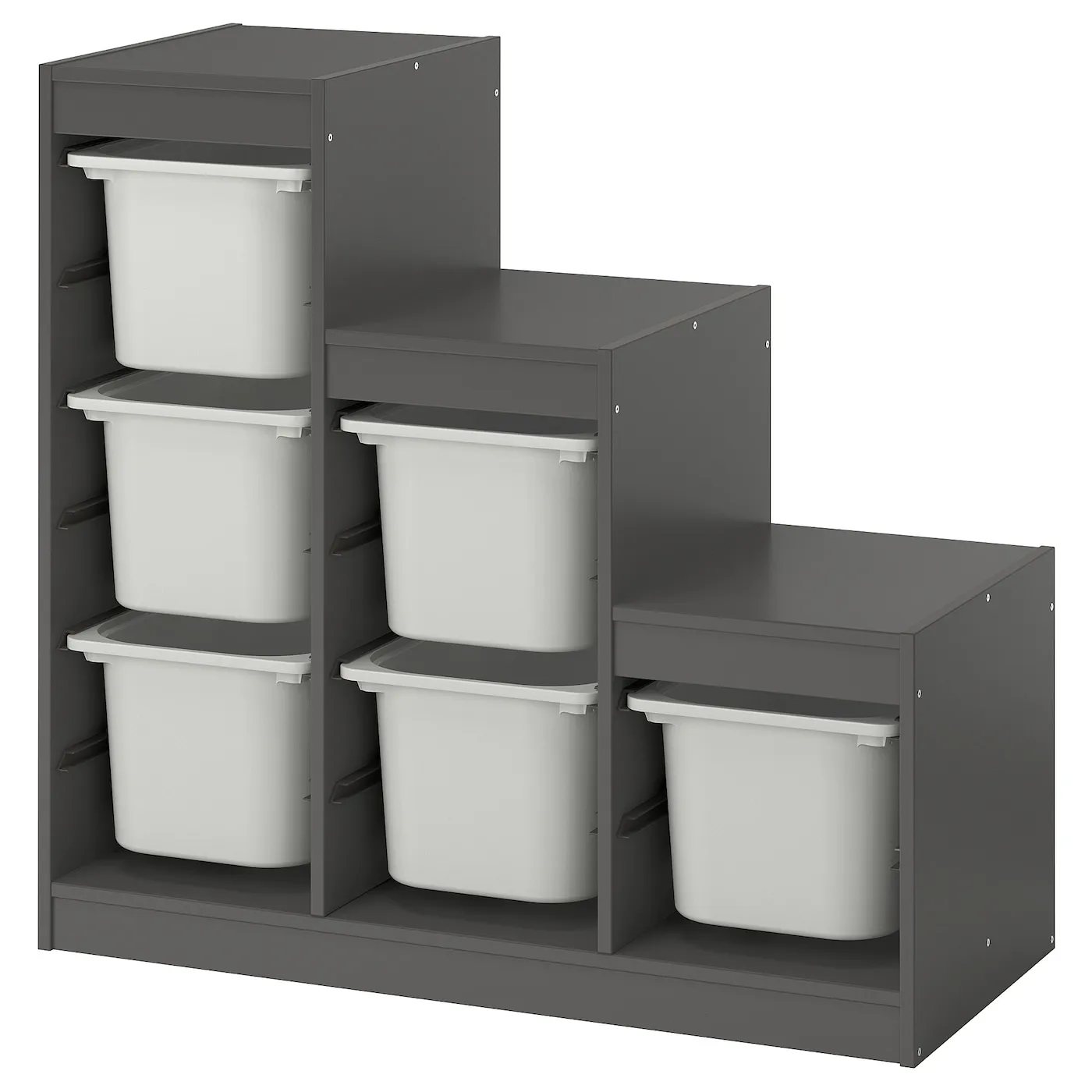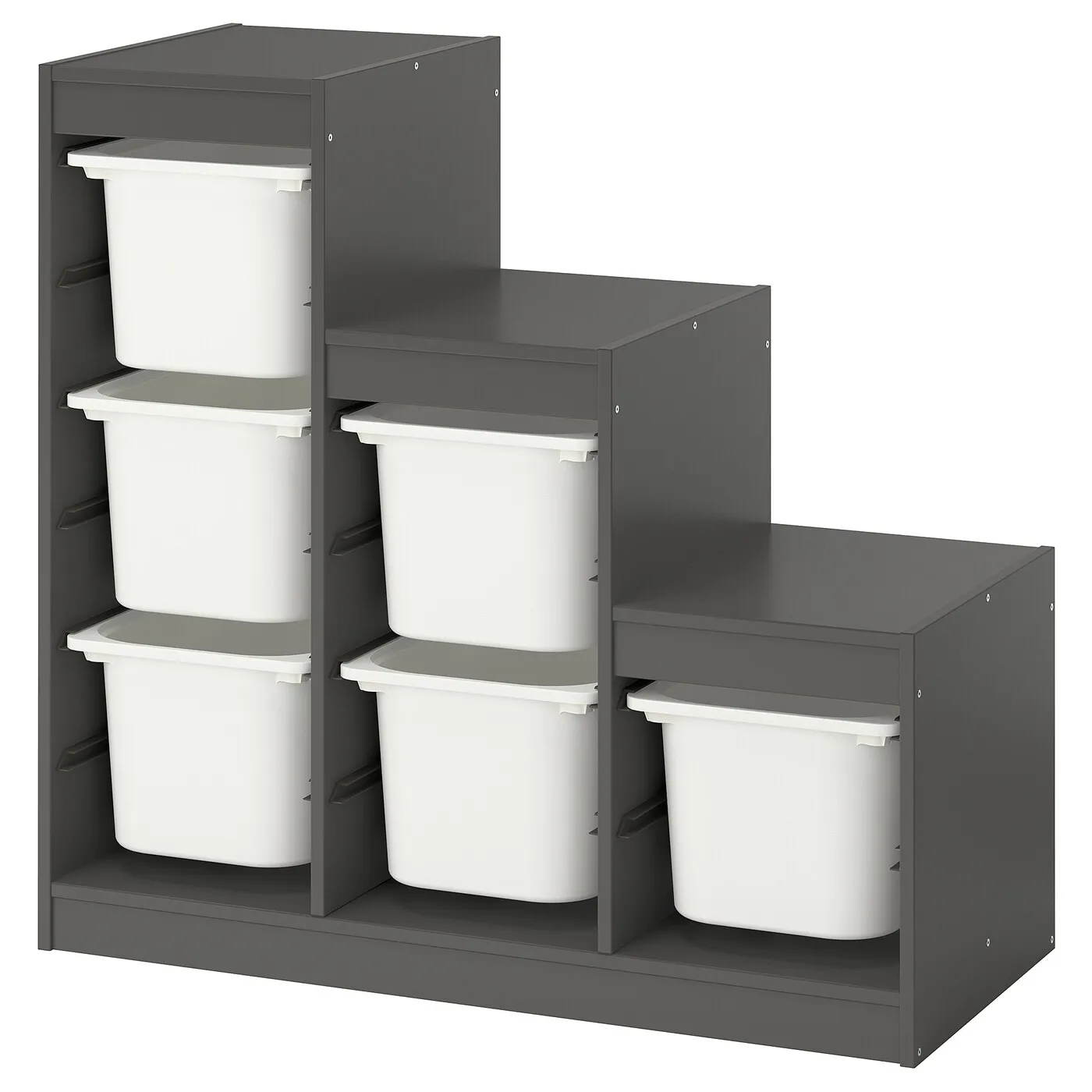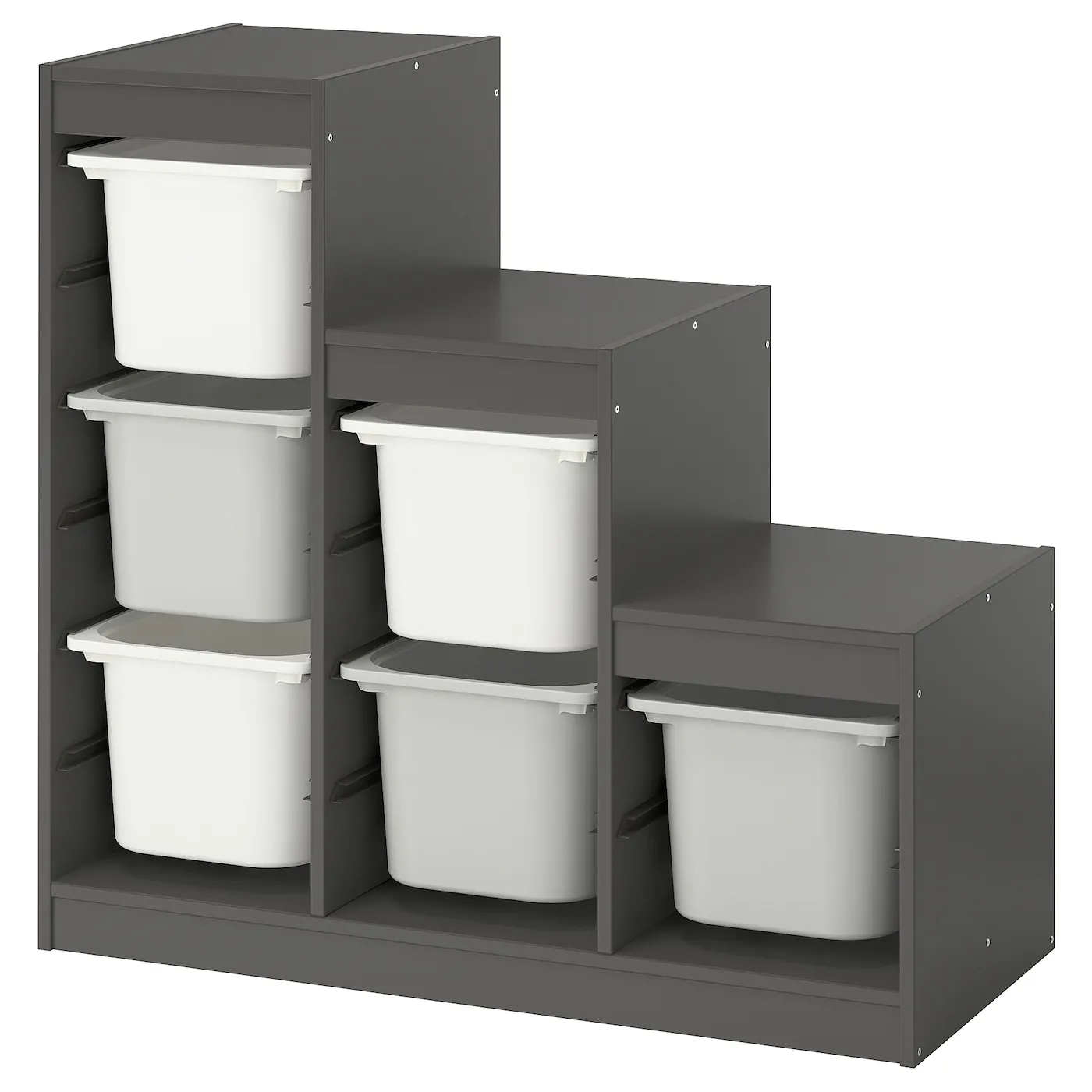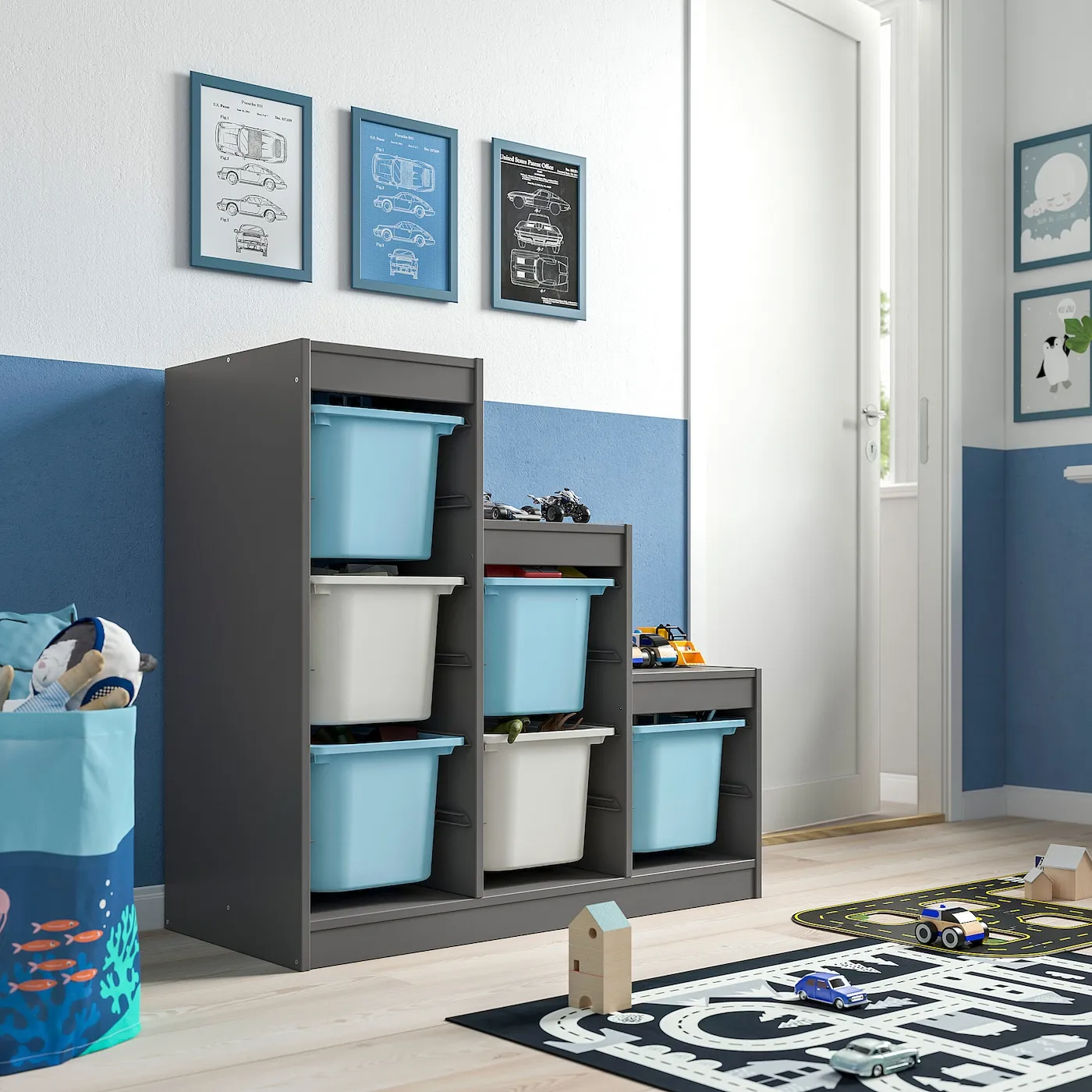 Детям важно иметь просторное и удобное место для хранения вещей. Серия TROFAST предлагает деревянные каркасы, сетчатые и пластиковые ящики (не менее 50% переработанного материала). Все элементы легко выдвигаются, переносятся и убираются обратно.