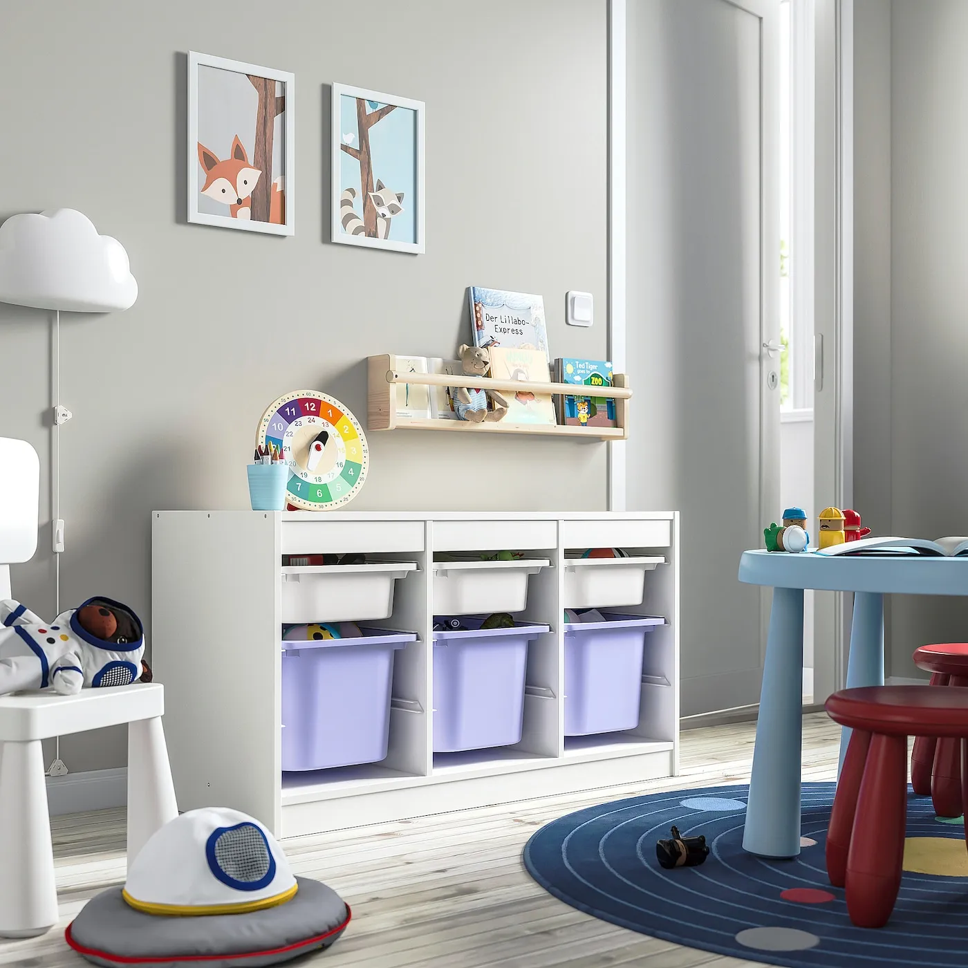 Детям нужна удобная и вместительная система хранения для их вещей. Серия TROFAST предлагает деревянные каркасы, сетчатые и пластиковые коробки и лотки (не менее 50% из переработанного материала). Их легко выдвигать, переносить и ставить на место.