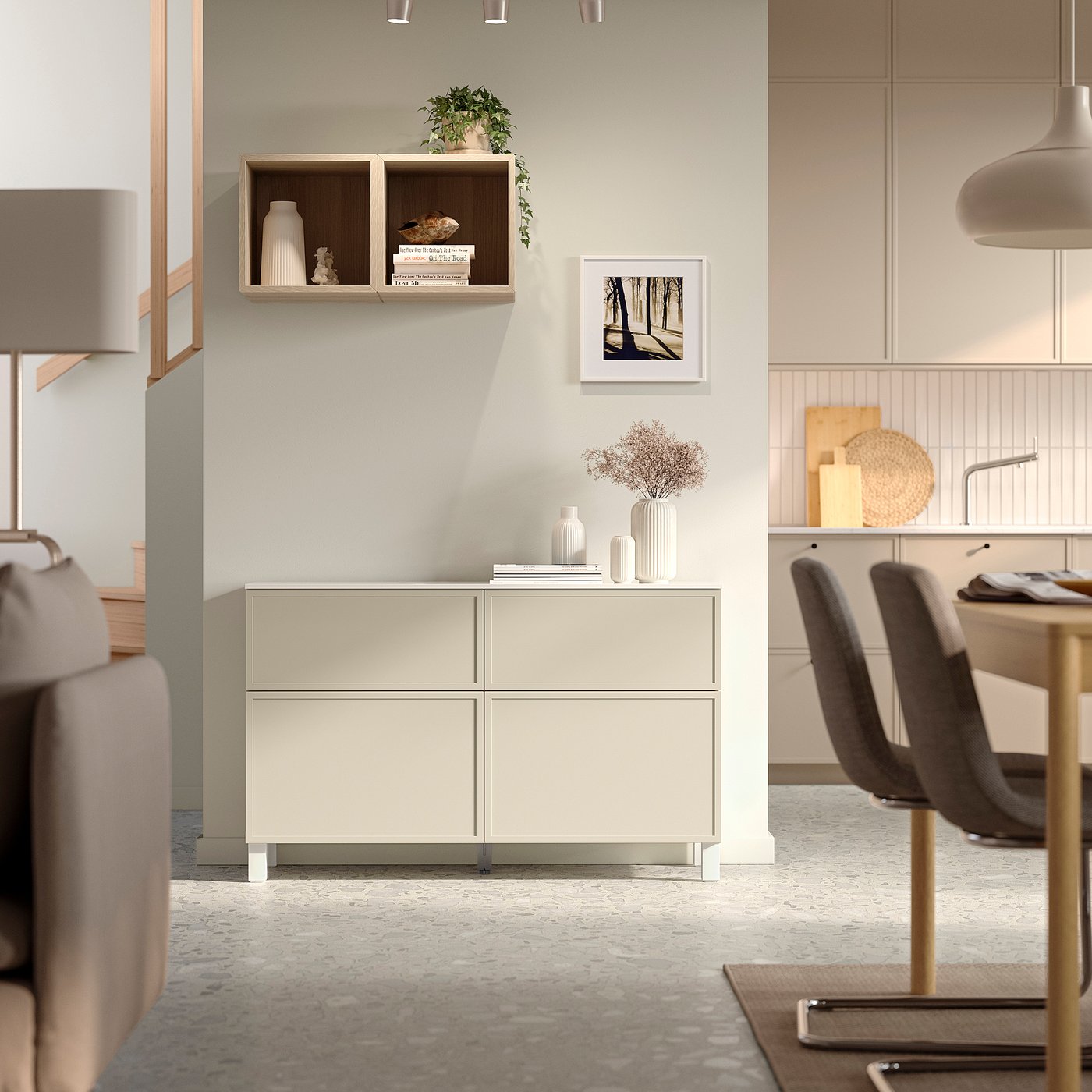 Ножки приподнимают вашу комбинацию BESTÅ от пола, придавая ей лёгкий воздушный вид и облегчая уборку пола под ней.