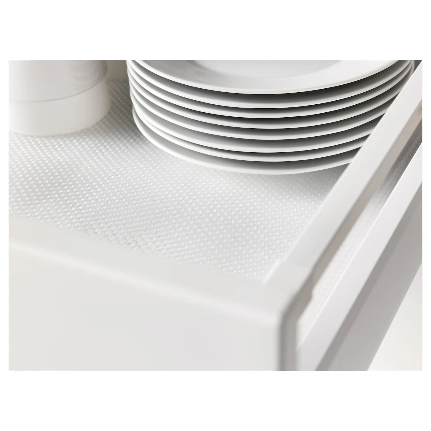 Работа на кухне становится приятнее без лишнего шума от столовых приборов и посуды. Этот коврик смягчает звуки при использовании вещей и защищает ящики и полки от царапин.